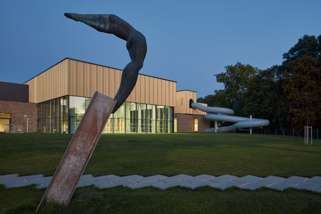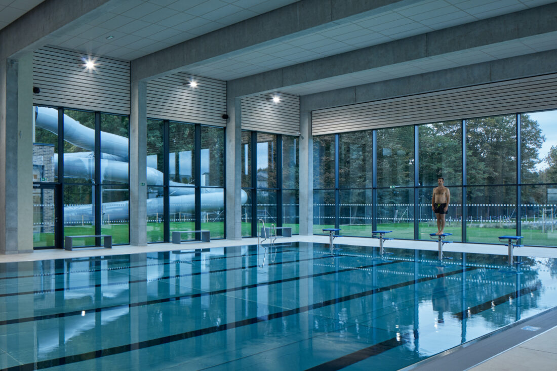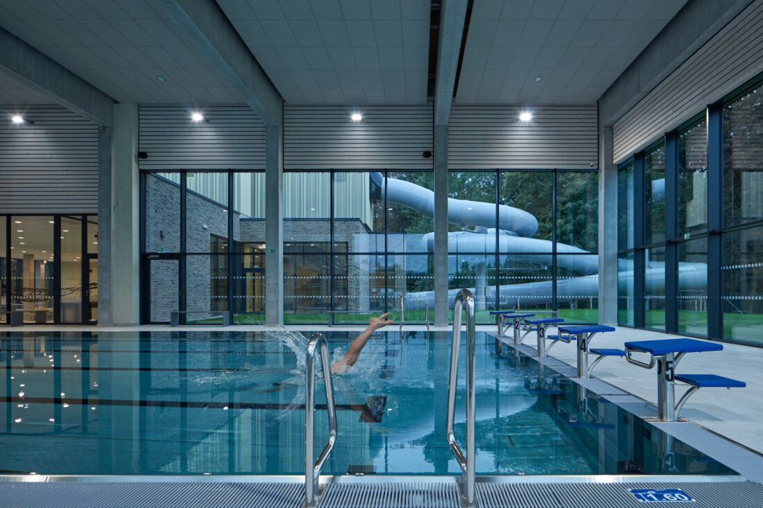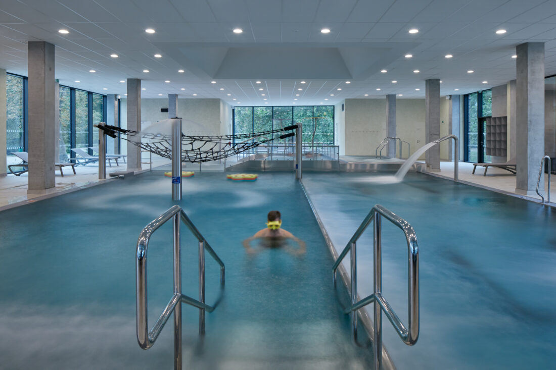 V srdci Kyjova vznikl moderní areál, který spojuje zrekonstruované venkovní koupaliště s novou halou krytých bazénů. Projekt architektů ze studia SENAA navázal na historii místa, která sahá až do počátku 20. století, a citlivě areál propojil s okolním parkem a vzrostlými stromy.