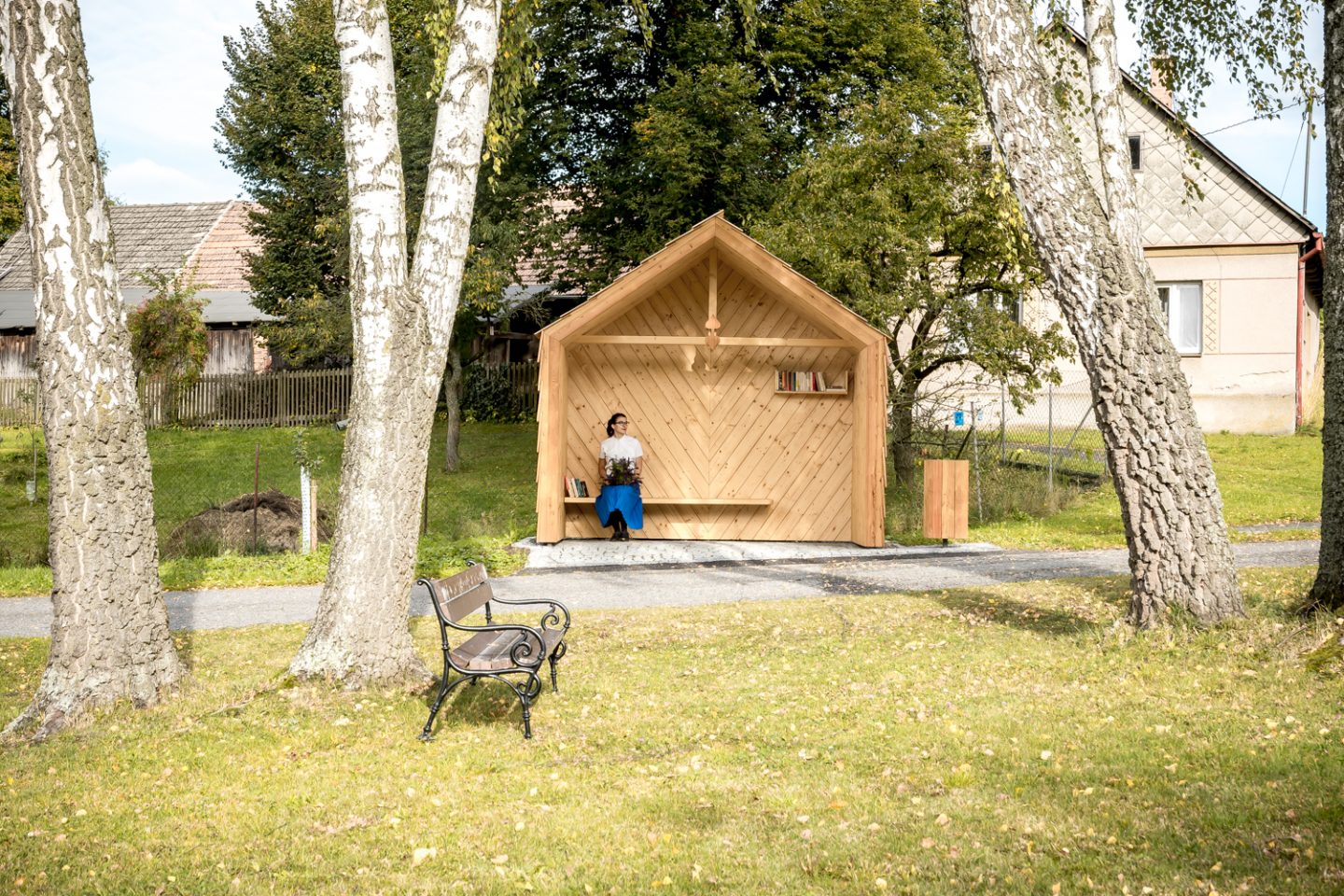 Zruinovaný stav zděné zastávky autobusové linky již řadu let nepůsobil přívětivým dojmem pro cestující čekající na svůj spoj. Za dobu své existence si prošla kdovíčím a na jejím vzhledu to šlo poznat. Po rekonstrukci z ní vyšlo něco mezi obytnou místností, předsíní a dopravní stavbou. Nebo všechno zároveň. Ranní káva z termosky při cestě do práce, odpoledne vyndat nesnědenou školní svačinu, napsat úkoly, jedna šachová partie, karban, zabrat se do knihy. Odložit si, spočinout, upravit vlasy a jde se dál.