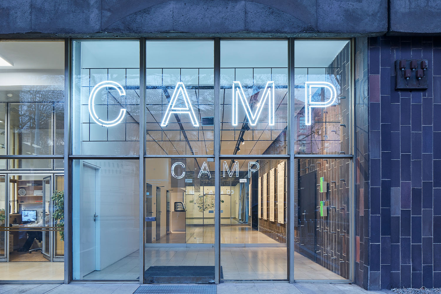 Požadavky na flexibilitu se promítají v řešení akustiky a systému osvětlení, který dokáže během pár chvil zcela změnit atmosféru, protože výstavy trvající i několik měsíců jsou vždy plánovány s ohledem na jednoduchou manipulaci i demontáž a maximálně využívají potenciál technologií i prostoru. Kromě funkce infocentra nabízí CAMP Praha výstavní sál s velkoplošnou projekcí. Panoramatická projekční stěna o rozměrech 24 × 4 metry s rozlišením 8K nabízí unikátní možnosti, jak promítat obsah. Díky své velikosti také dovoluje simulaci městského prostoru v měřítku 1 : 1.