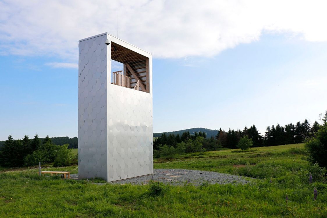 Dřevěná konstrukce je pokryta nerezovými šablonami. Stříbrně lesknoucí se povrch vyhlídky má evokovat těžbu stříbra v tomto regionu. Ničím nerušený výhled zajišťují dvě velkoplošná vyhlídková okna ve výšce 5 metrů nad zemí. Ve vyhlídkové vížce je instalován zvon, na který návštěvníci mohou zazvonit. Celková výška vyhlídky je 8 metrů.