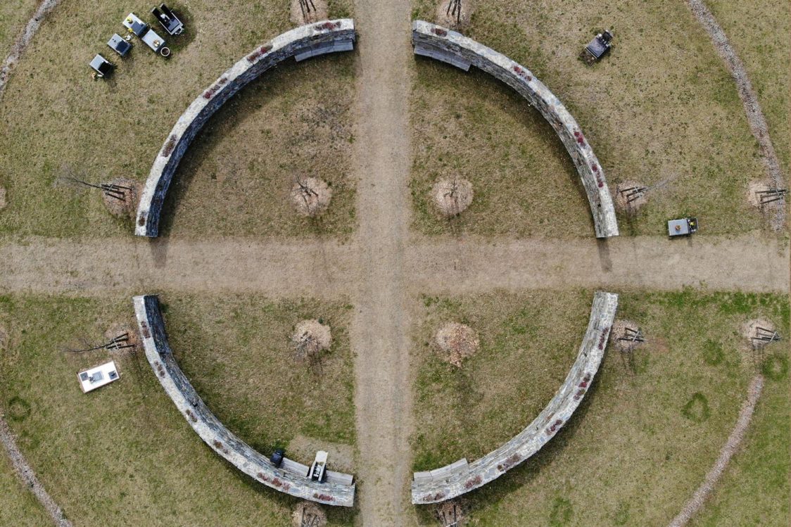 Hřbitov je zakomponovaný do krajiny a tvoří její přirozenou součást. Kruhový tvar vymezený kamennými zdmi také symbolizuje keltský kříž, s nímž je obec spojená díky keltskému oppidu Závist. V parku a na hřbitově bylo vysázeno na dva a půl tisíce stromů, které mají v následujících dekádách navodit správnou atmosféru.