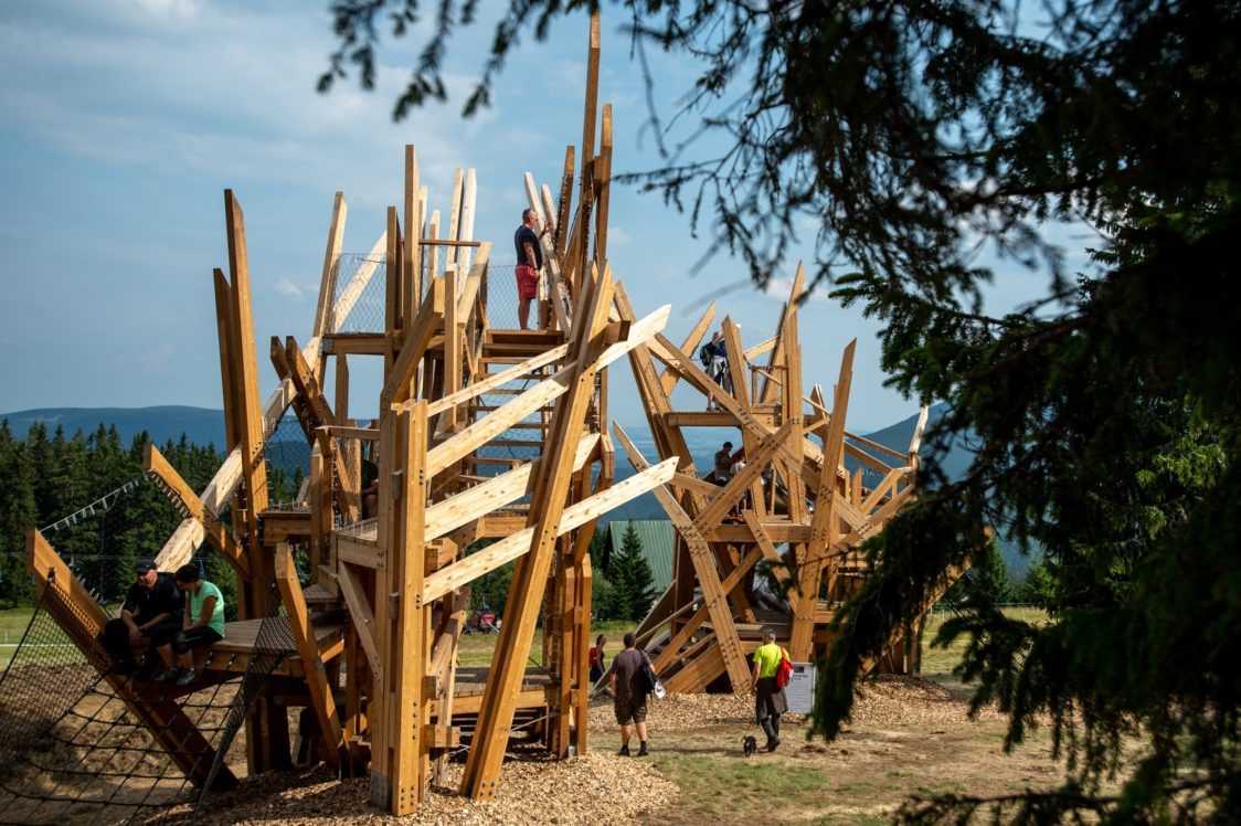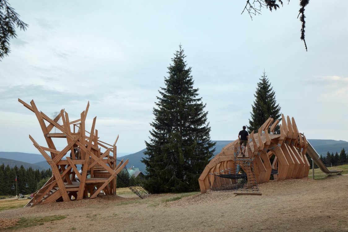 Tým Molo architekti se snažil při návrhu co nejvíce zachovat původní ráz krajiny herní prvky do krajiny jenom vložit.