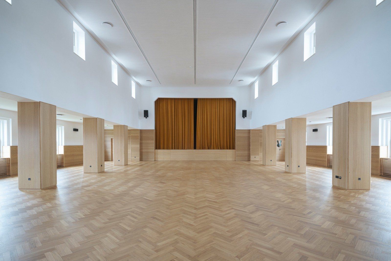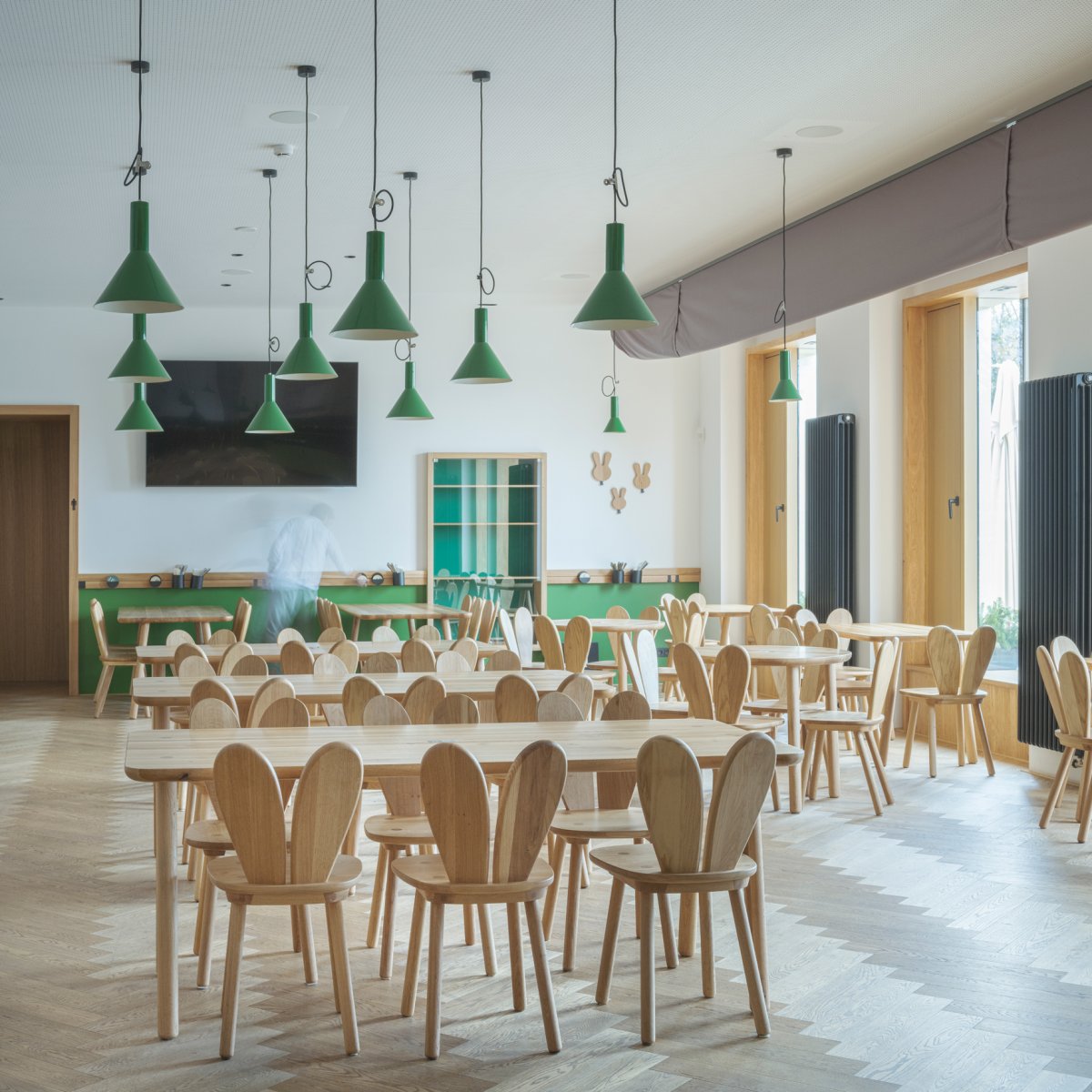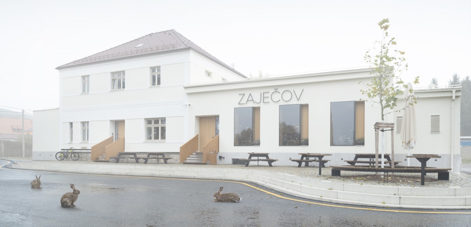 Lidový dům v Zaječově, perla obce Zaječov nedaleko Prahy, přitahuje svou elegancí a jednoduchostí. Název obce, „králičí město“, se promítá do našeho designu, který v sobě nese ducha komunity. Tři velká okna propojují interiér s okolním fotbalovým hřištěm, přičemž každý detail od obkladů po parkety odráží rustikální kouzlo a historii vesnice. Barvy přírodního dubu, bílé stěny a lovecká zelená vytvářejí harmonii a klidný prostor, kde se tradiční vesnická pohostinnost setkává s moderním minimalismem.
