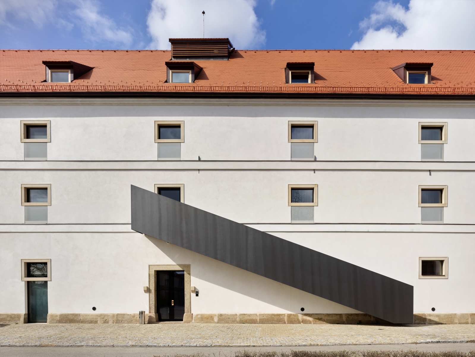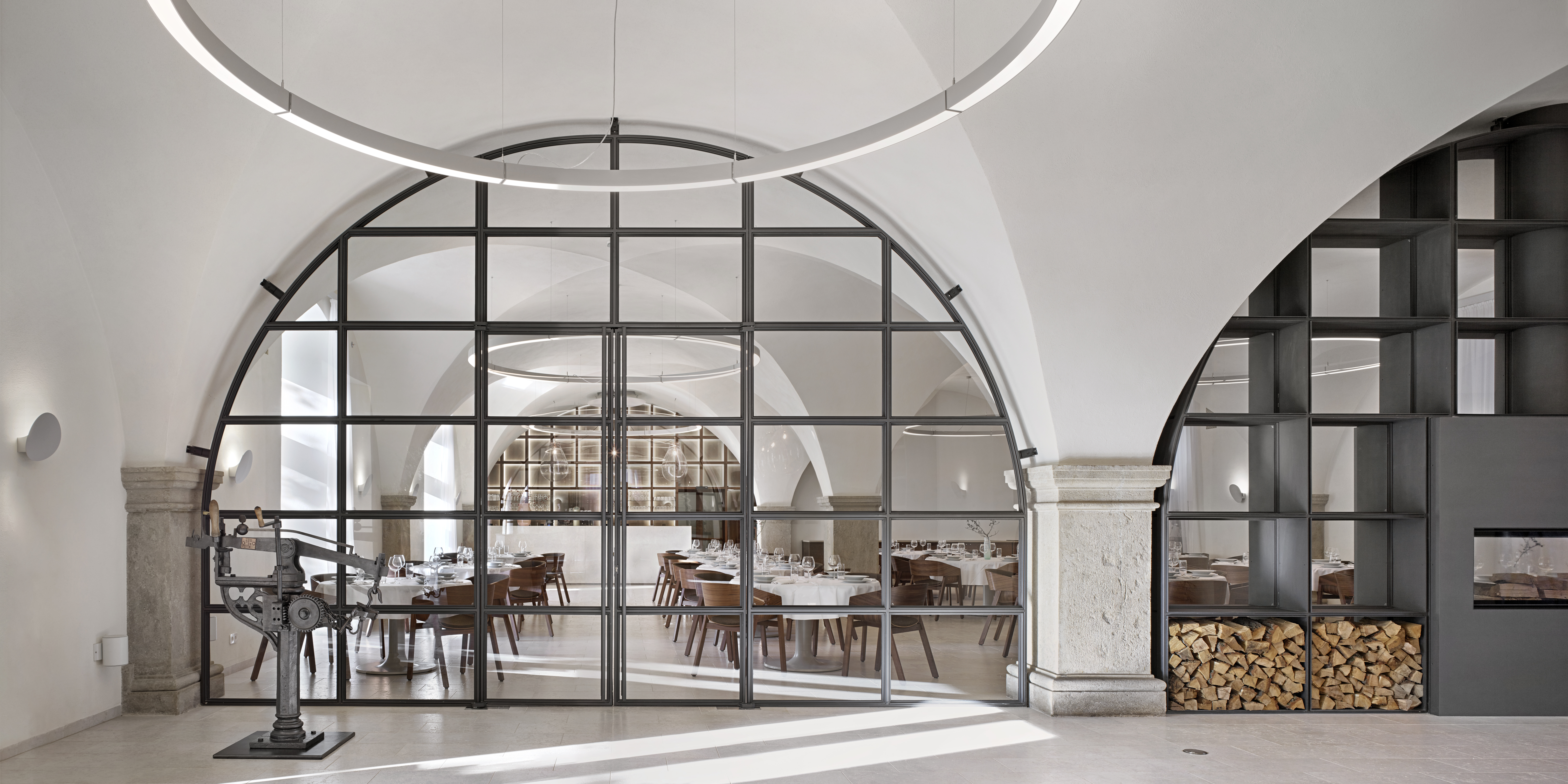 Při vstupu Vás ohromí vysoké klenuté stropy, čisté linie a vzdušnost celého prostoru. Technické zázemí hotelu se nachází v nově vzniklé budově hned vedle sýpky. Část této budovy byla zapuštěna a na její střeše vznikl meruňkový sad. Sýpka si díky tomuto zapuštění ponechala svou historickou jedinečnost.