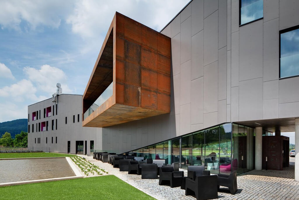 Hotel Miura je odvážnou stavbou pocházející z ateliéru LABOR13 a má znázorňovat kosmickou loď. Architekt vytvořil promyšlené spojení designu, grafiky a architektury. Její výrazné tvarosloví navazuje na panoramata okolních kopců, oživuje místní krajinu a vytváří dominantu s jasnou estetikou. Hotel Miura přiléhá zcela těsně k vyhlášenému golfovému areálu a je víceméně jeho součástí.