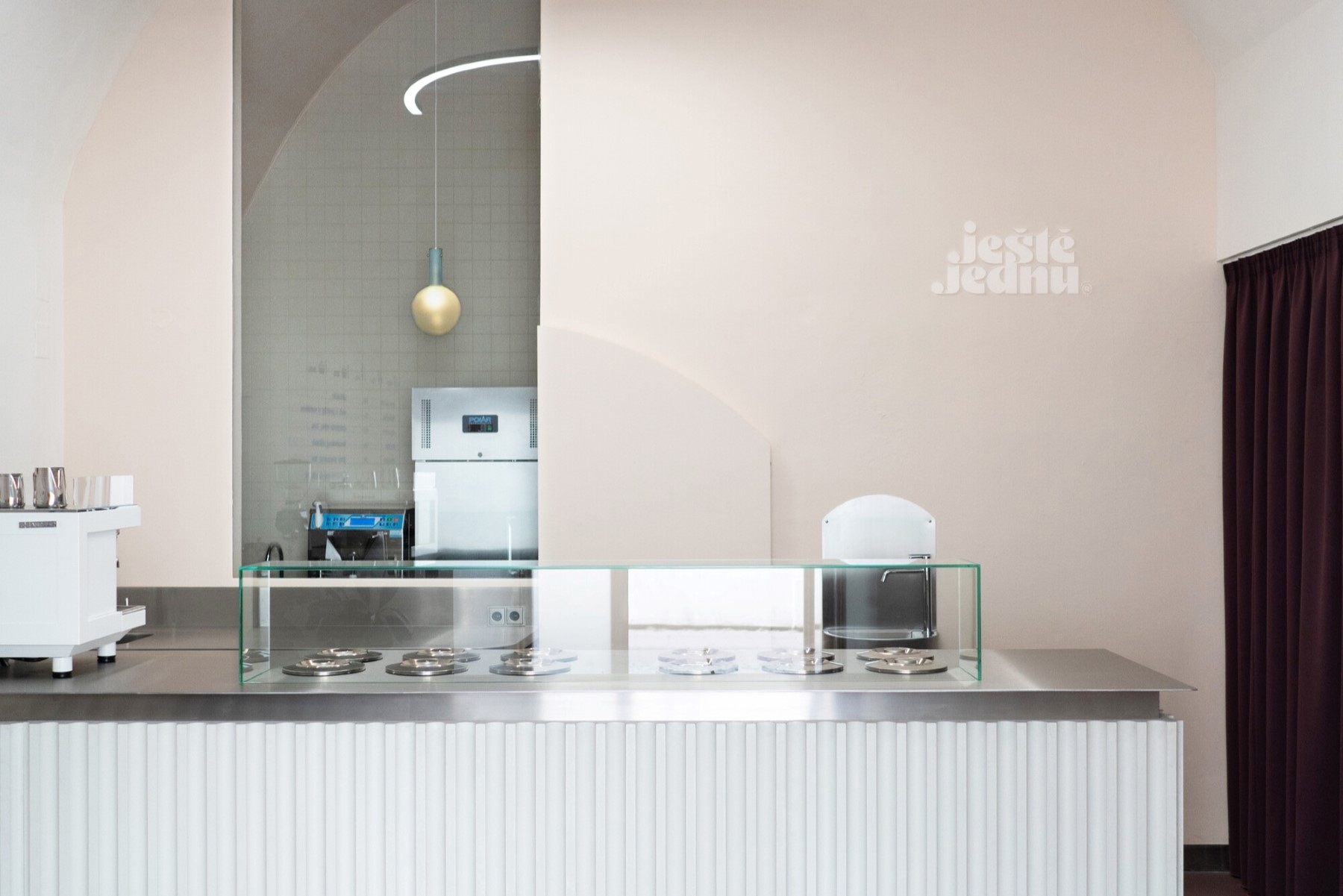Koncept zmrzlinárny pracuje s historií místa, využívá kleneb a oblouků a odkazuje k původu italského produktu na českém místě.