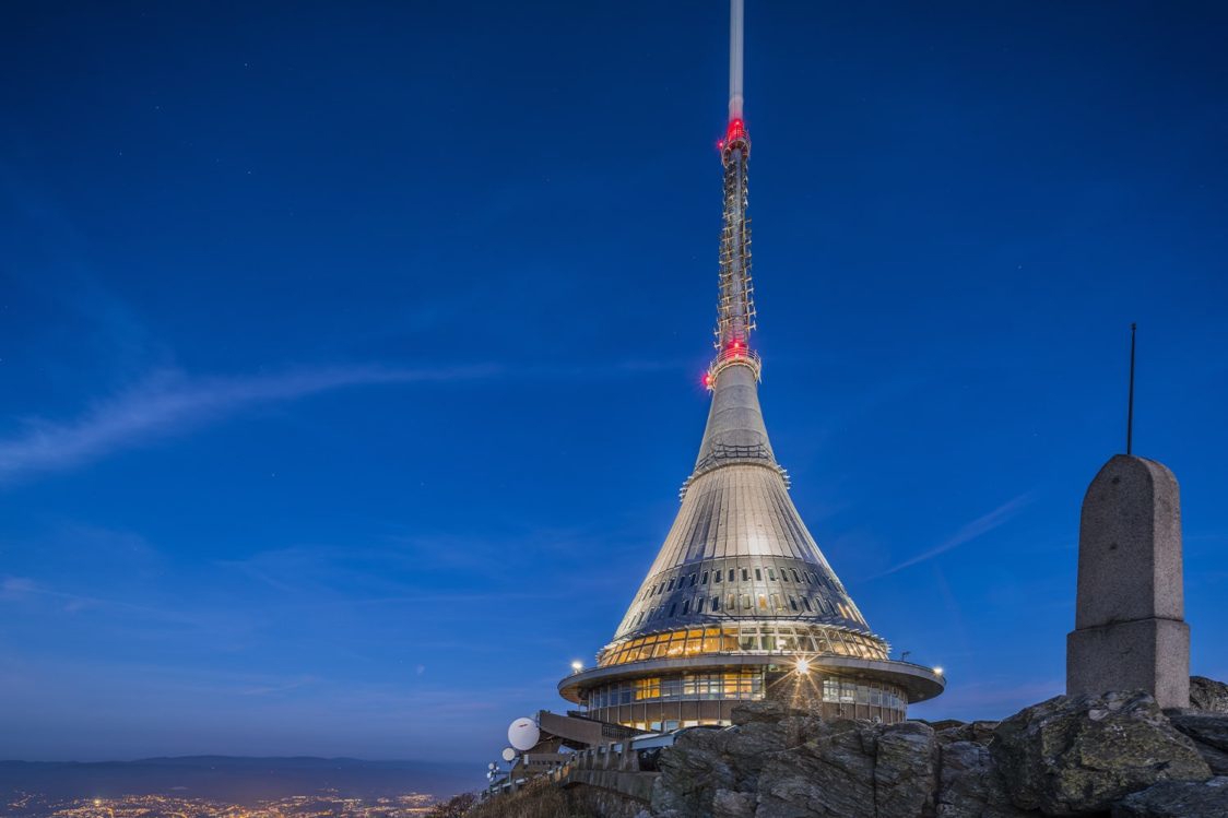 Na Ještědu se ve výšce 1012 m.n.m se nachází stejnojmenný vysílač a hotel. Tyčí se do výšky 94 metrů, jeho stavba začala v roce 1965 a skončila o 8 let později. Díky svému tvaru je extrémně odolný nepřízním počasí. Televizní vysílač a horský hotel navržený Karlem Hubáčkem získal v roce 1999 ocenění Stavba století. Hyperboloid, neboli jak se tvar stavby nazývá, prodlužuje vrchol hory Ještěd.