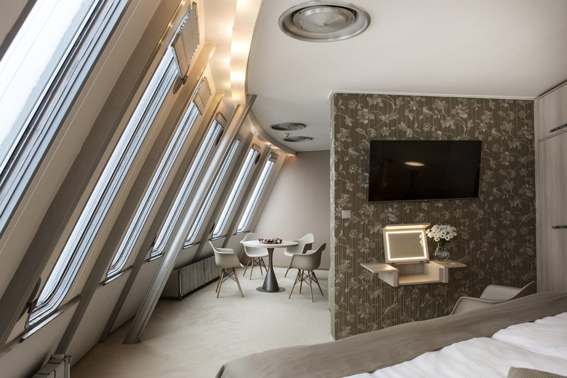 Vnitřní mezikruží 2. podlaží tvoří vstupní hala s recepcí hotelu, jejíž dominantou je zavěšené schodiště, vedoucí přímo do 3. podlaží. To je zaplněno restaurací pro tři sta hostů, barem a salonkem. Prostor je celý co nejvíce prosklen. Následující dvě podlaží slouží ubytování, ve 4. podlaží je 14 hotelových pokojů celkem pro 56 hostů.