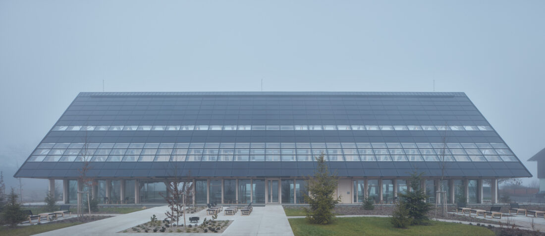 Budova je koncipována jako schránka, která se skládá z rámové konstrukce tradičního tvaru, sestavené z dřeva. Dřevo, které bylo použito k výrobě konstrukce, pochází z lesů, které firma spravuje.
