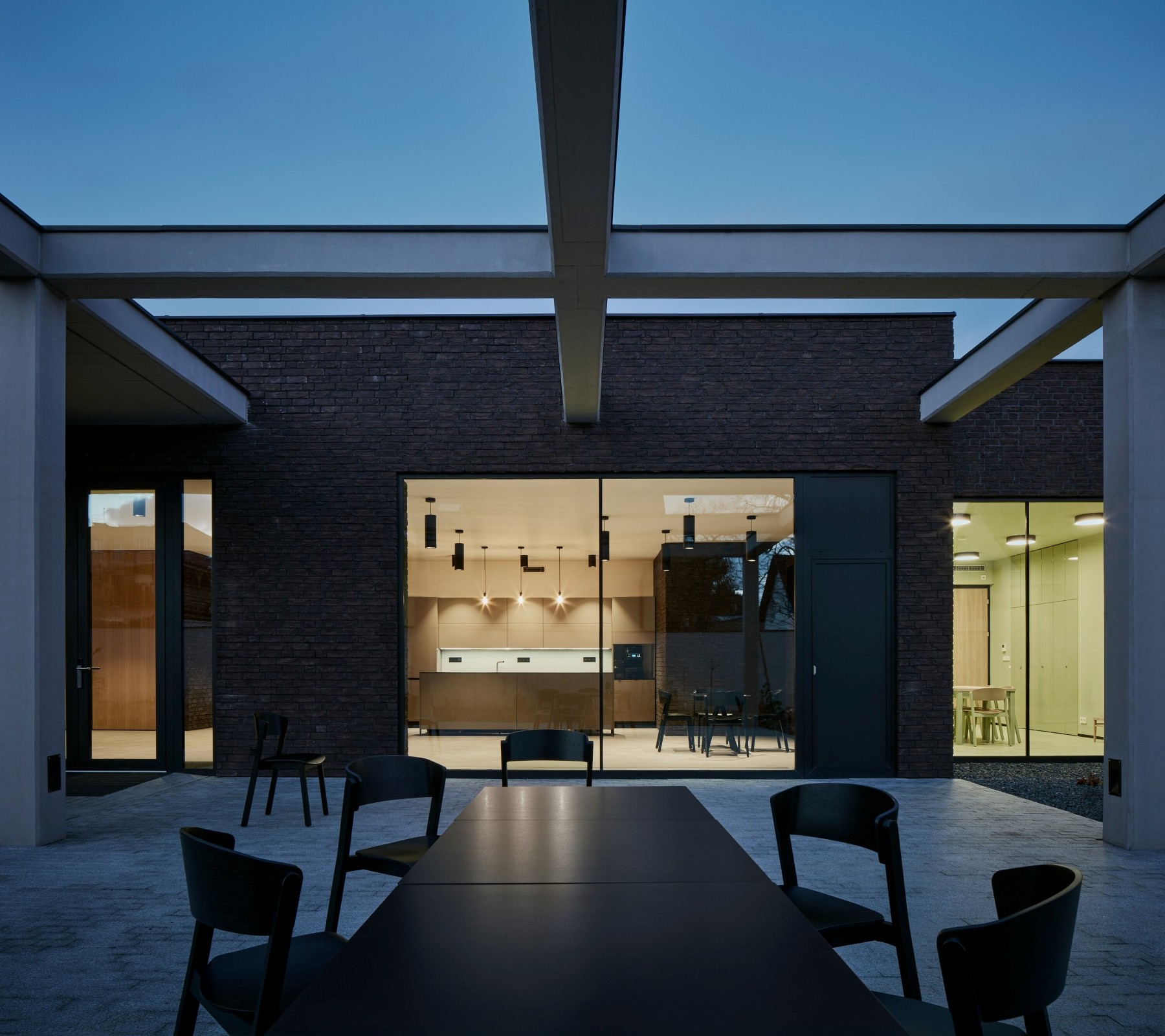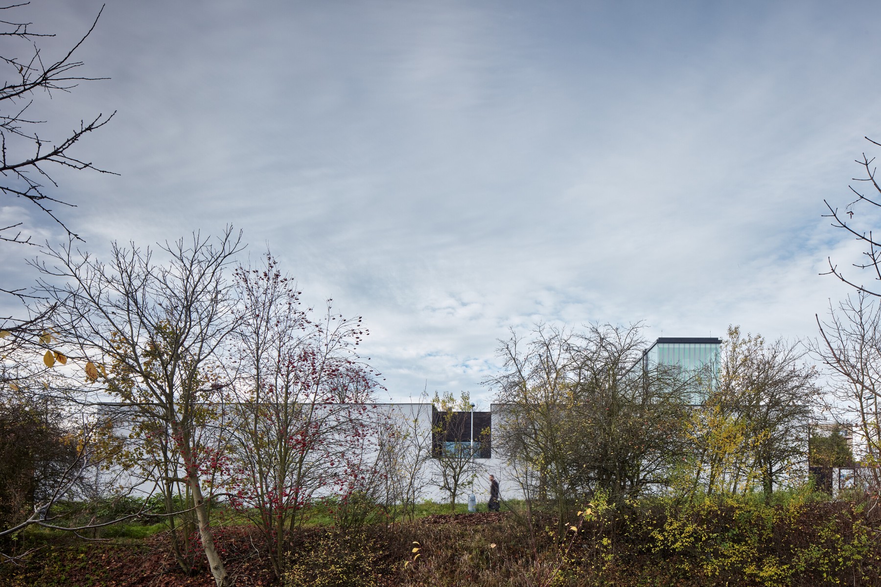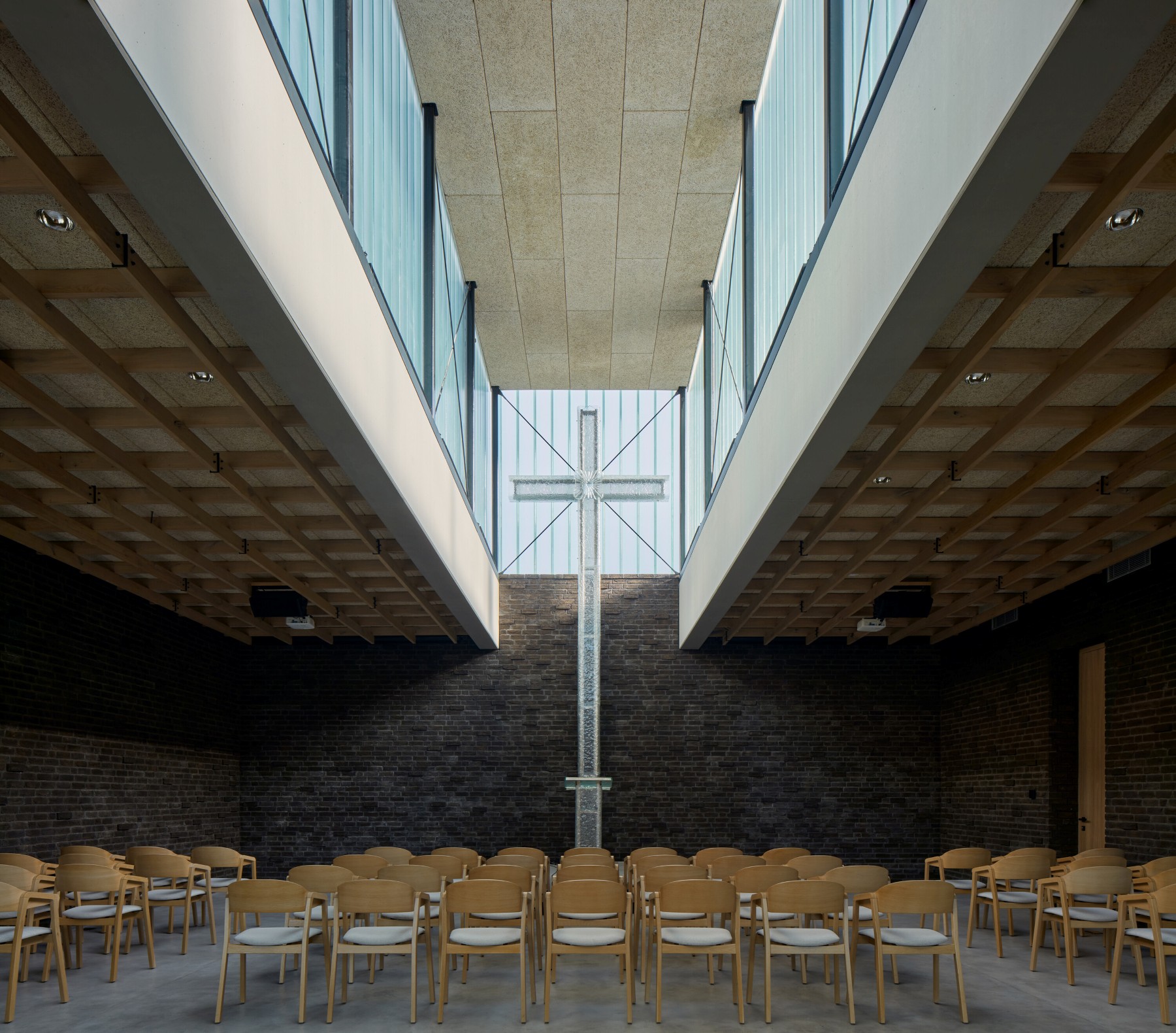 Nová budova je pojata jako zahradní pavilon se zákoutími a pergolami, umístěný uprostřed areálu. Solitér zaujímá skromnou polohu vůči okolní zástavbě. Dopadající světlo zaplňuje prostor, protíná jeho atmosféru. Evokuje pocit vznešenosti, očekávání, zamyšlení, pokory. Podobně silný je prožitek tmy, který otevírá cestu ostatním smyslům a obrací vnímání dovnitř. Prožitek světla a tmy je přirozeným východiskem celého konceptu. Stíny, napětí mezi světlem a tmou, graficky podtrhují linie prostoru, symfonii protikladů. Kladení cihel v sále symbolizuje pulzaci života – k pomyslnému středu, ke kříži, se cihly shlukují, opačným směrem řídnou, sublimují.