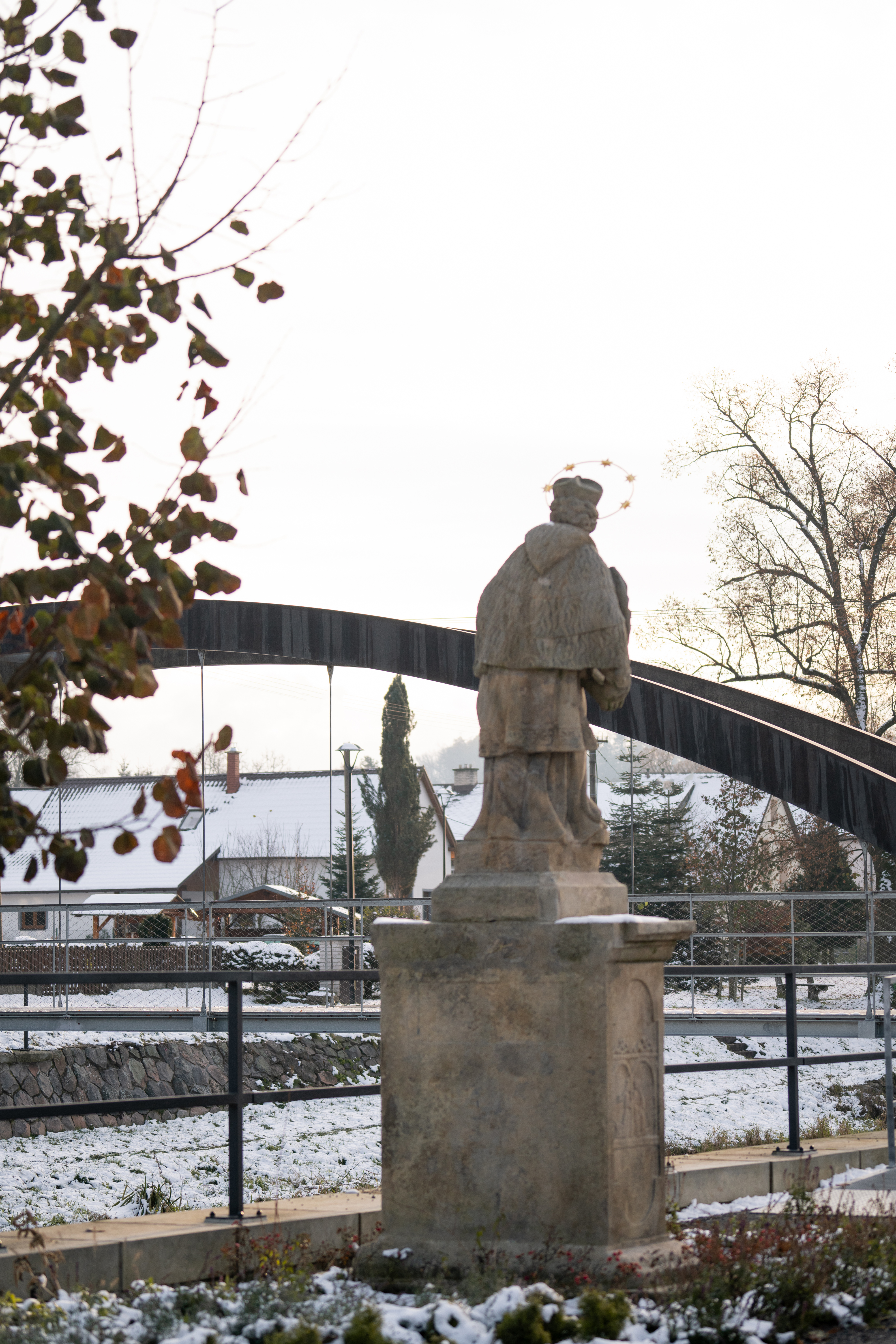 Koncept nové stavby přesně zachovává siluetu původního mostu, avšak v moderním provedení. Tloušťka oblouků je oproti těm původním poloviční (175 mm), díky čemuž celek působí velmi lehce a zároveň odolně. Jde o vůbec první lávku na světě s horním obloukem z UHPC. Součástí návrhu bylo i umístění barokní sochy sv. Jana Nepomuckého na předpolí lávky, čímž stavba propojuje moderní technologii s historickou tradicí.