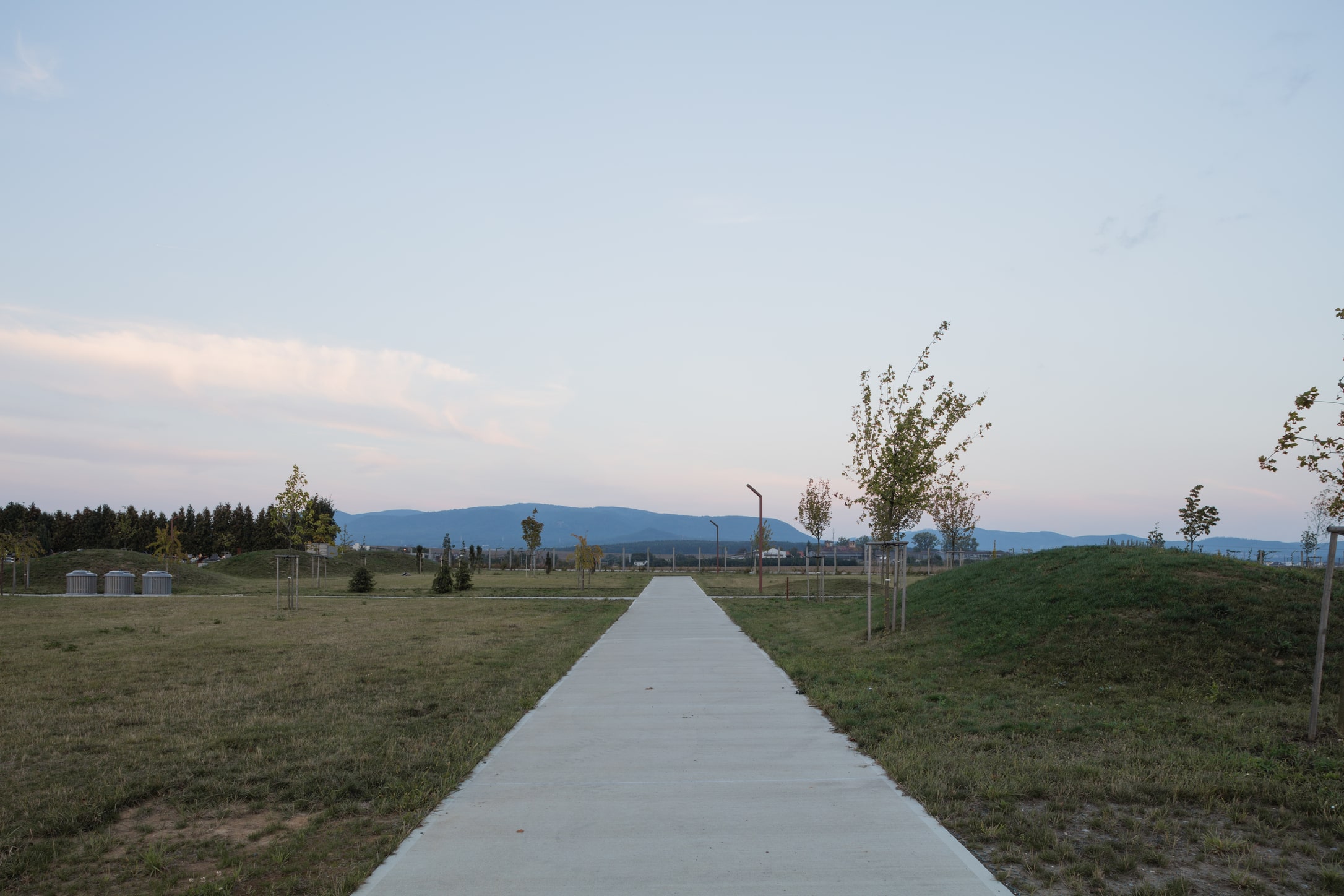 Hlavní myšlenkou bylo vytvořit místo posledního odpočinku v podobě lesoparku nejen pro vzpomínku, ale i pro běžné užívání. Vysázená zeleň vytvoří kontrast s betonovými plochami a jednotlivými hroby. Již nyní zjemňuje atmosféru a nahrazuje chybějící parkové plochy okolního sídliště. Lemující aleje tvoří kulisy a intimní zákoutí, která se mění podle ročních období. Terénní valy, zákoutí a uvolněná kompozice poskytují vizuální a pocitovou bariéru v kontaktu s pohřebišti. Svět živých a svět zesnulých v těsném, ale vzdáleném kontaktu. V harmonickém kontaktu.