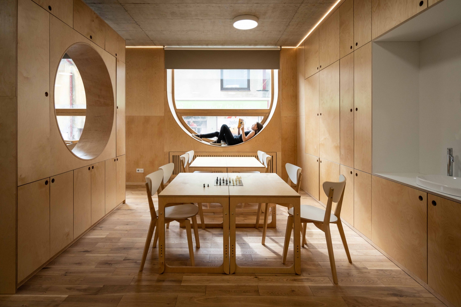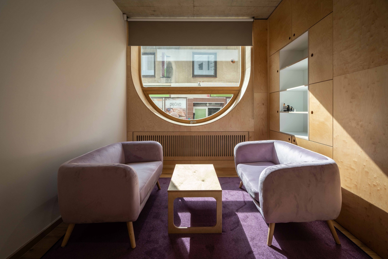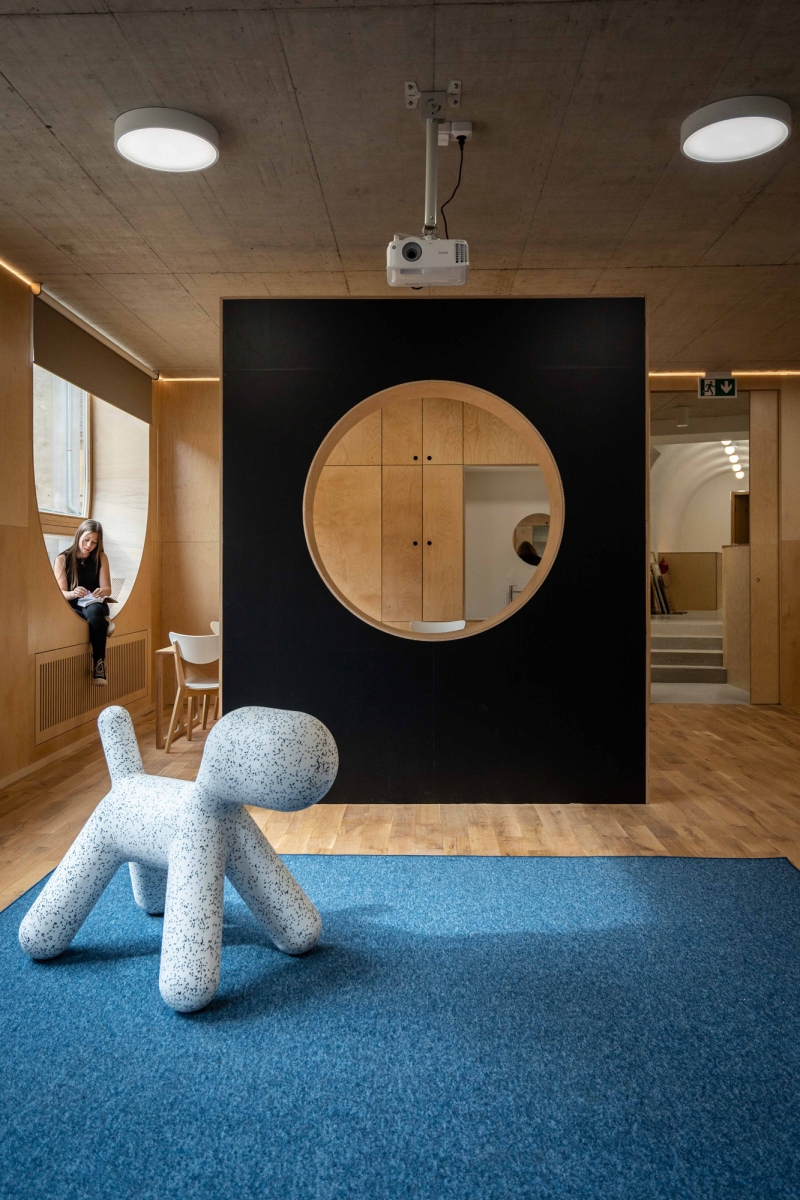 Klub pro děti a mladistvé v tíživé životní situaci vznikl úpravou suterénu bývalé školy z 18. století, jež těsně sousedí s kostelem sv. Mikuláše. Mezi těmito dvěma objekty bylo vybudováno nové schodiště lemované rampami, které vedou jak dolů do klubu, tak na zvýšený parter, kde vznikl nový veřejný prostor navazující na okolí kostela. Samotná klubovna se nachází částečně pod zemí a spojuje nově vybudované části s budovou staré školy a její přístavby. Není zde však vůbec tma - prostory jsou osvětlovány velkými střešními světlíky a jsou obloženy světlým dřevem. Děti zde mohou využívat klubovnu, která kromě počítačového koutku a prostoru pro tvoření obsahuje i horolezeckou stěnu. K odpočinku pak slouží prosklené atrium.