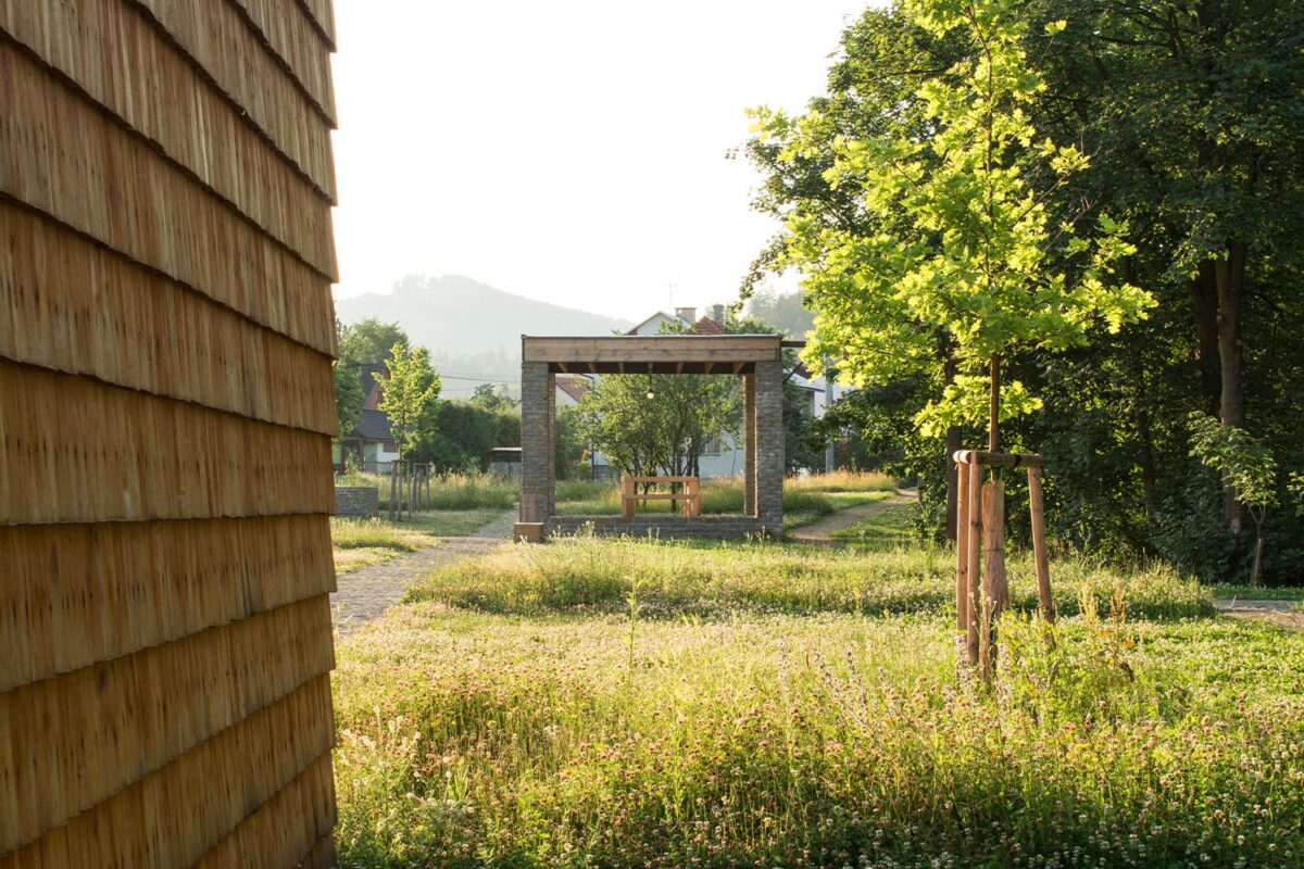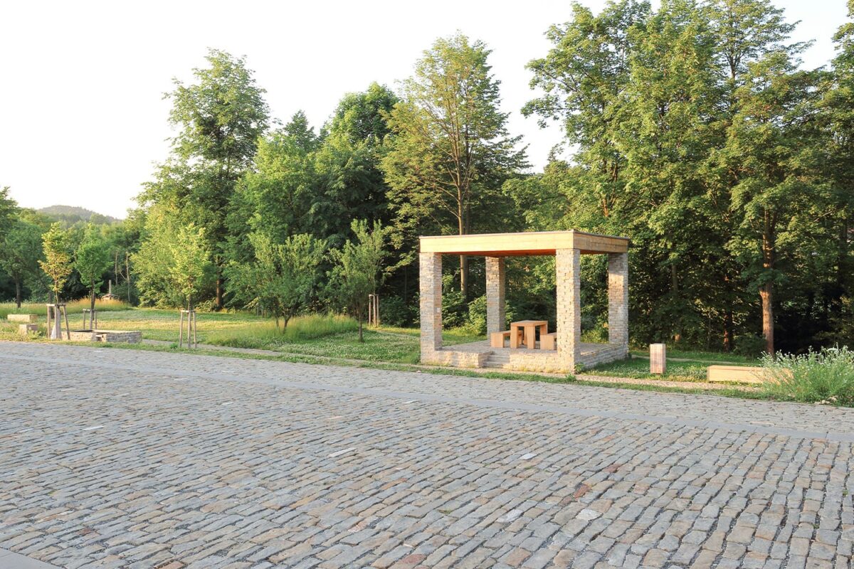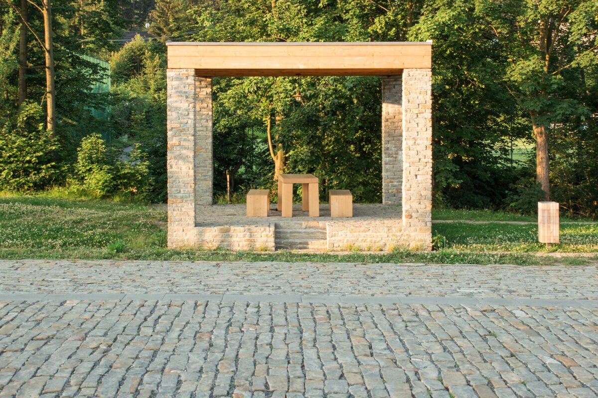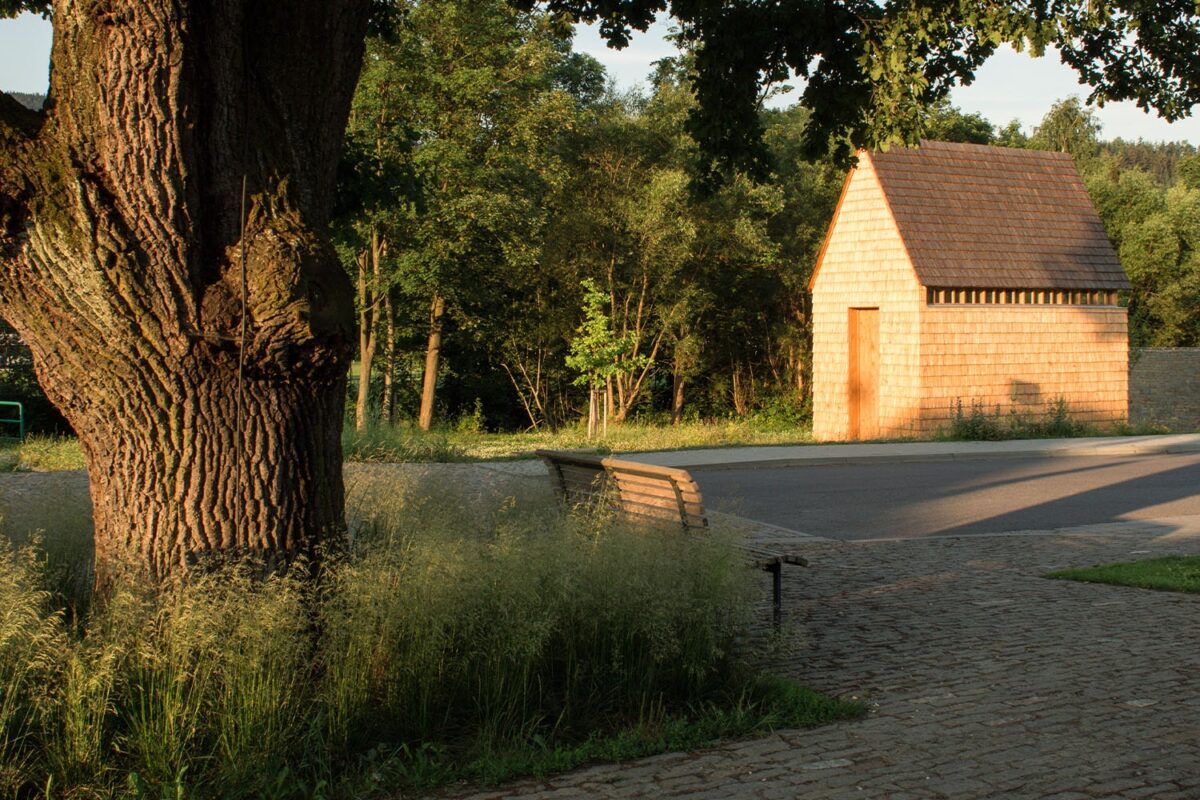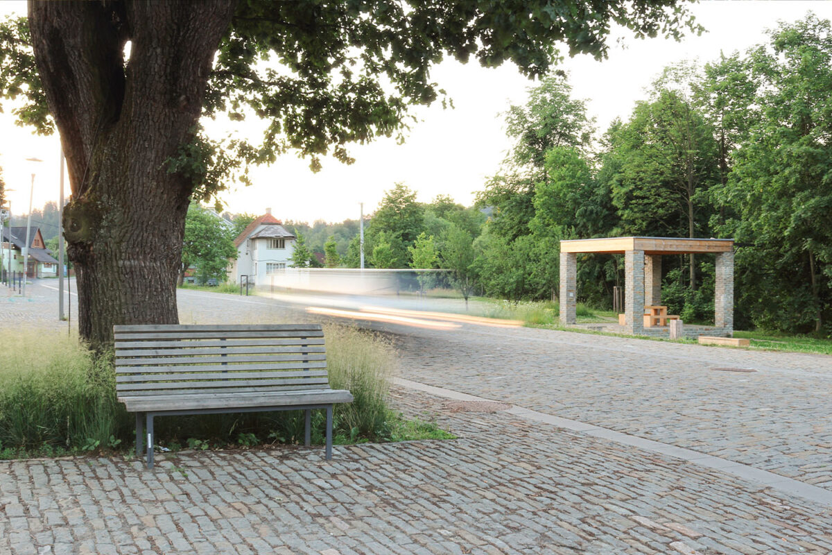 Nová náves v Prostřední Bečvě od studia Henkai má podpořit vznik fungujícího charismatického a soudobého středu správné valašské dědiny. První etapou přestavby byl nový objekt a úprava plochy u sokolovny. Dřevěná stavba v sobě sdružuje krytou terasu bufetu a pódium pro vesnické koncerty. Další etapou byla nová náves, vytvářející lépe formulované, rozpoznatelné a charakteristické centrum valašské obce. Pevný povrch, vydlážděný místním pískovcem, je doplněn alejí stromů vymezující ulici.