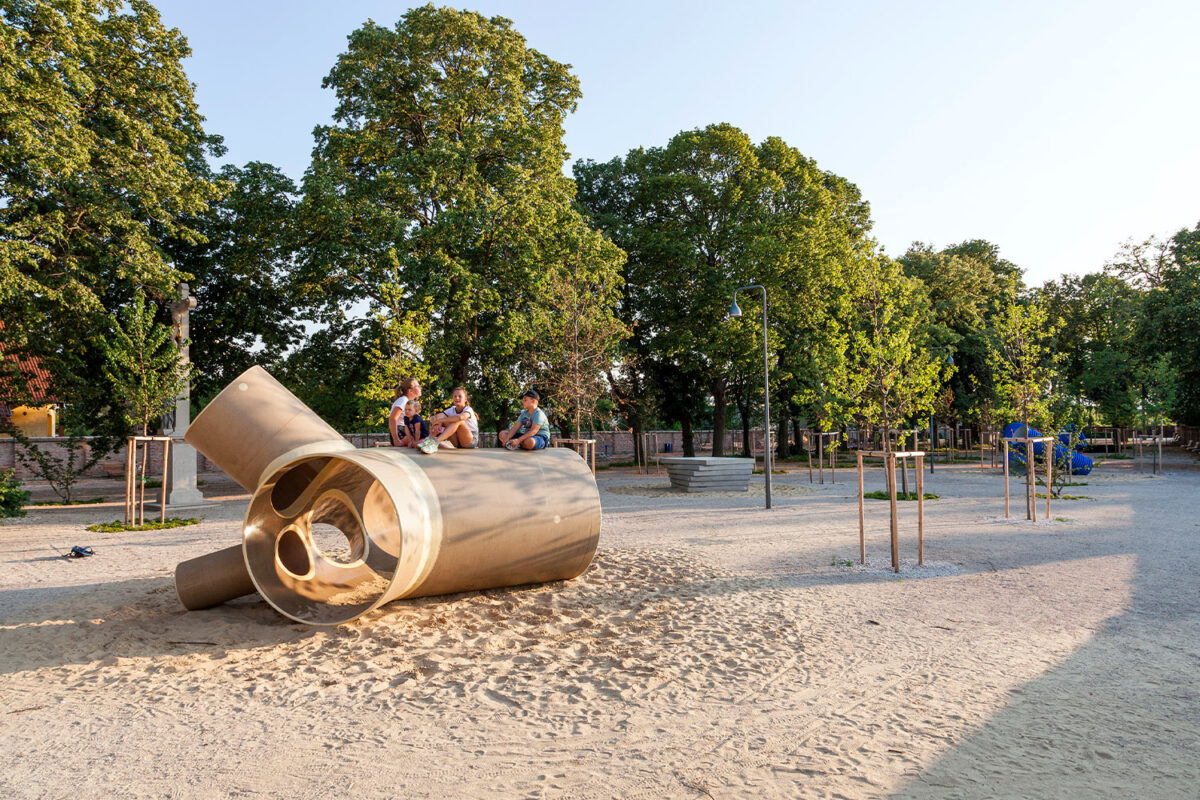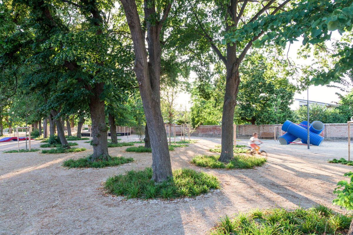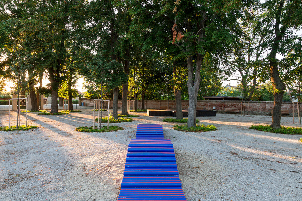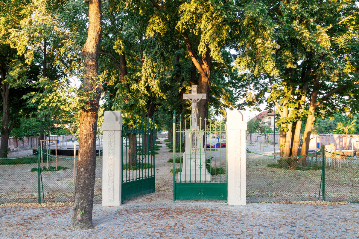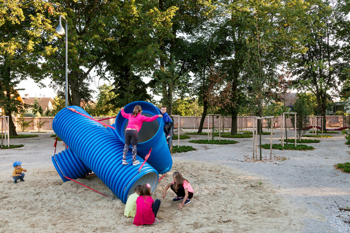Přeměna někdejšího záhumenního hřbitova na park s herním vybavením pro děti transformuje pozapomenutou průchozí zahradu na místo aktivního odpočinku všech generací. Návrh vychází ze tří základních principů – aktivace rozhraní parku, umožnění svobodnějšího pohybu na jeho vnitřní ploše a doplnění stávajících objektů o nové prvky. Rozšířený chodník podél Hlohovské cesty, tzv. piazzetta, vytvořil velkorysejší nástup do parku z této dopravní tepny.