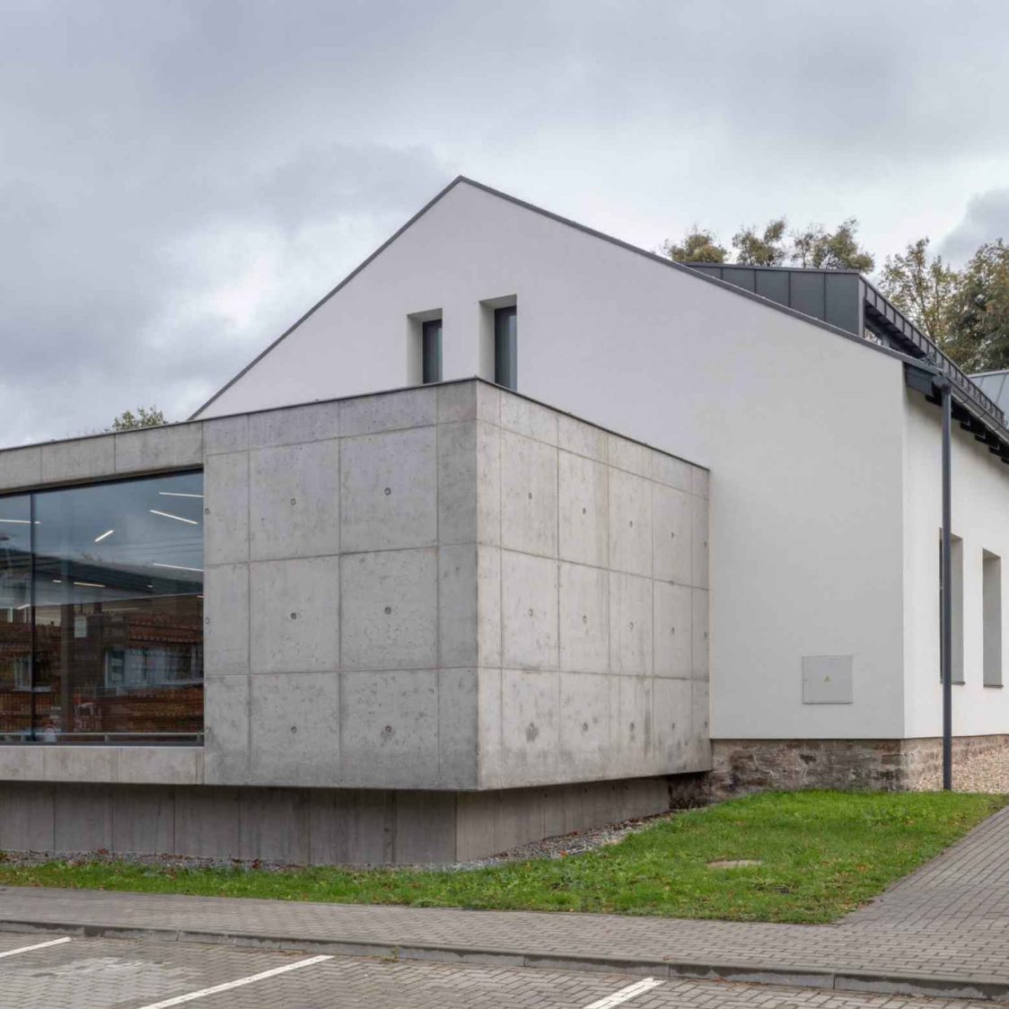 Přistavěná část je kombinací betonu a skla, působí tak velice prostorně z vzdušně. V patře je pomocí vikýřů prosvětlen prostor, který tvoří šest kanceláří, jež byly hned po rekonstrukci obsazeny.
