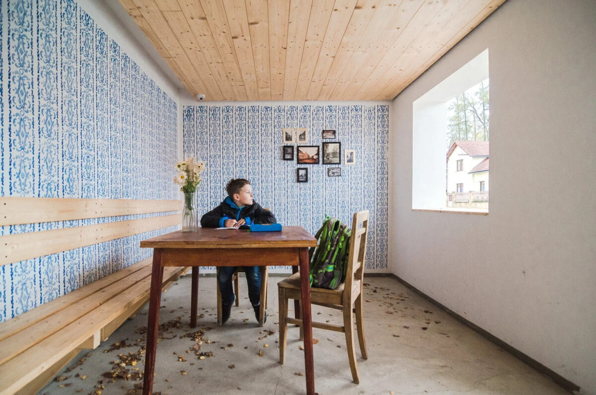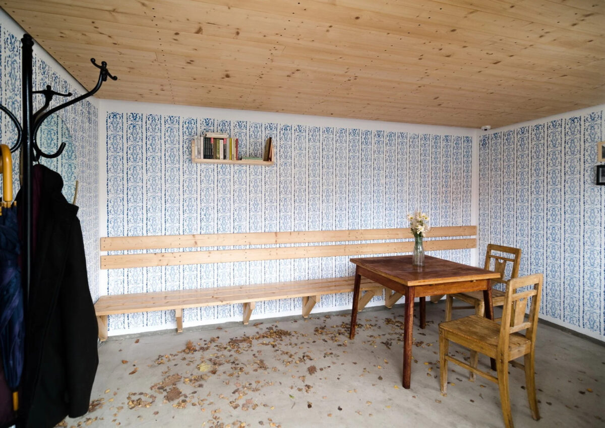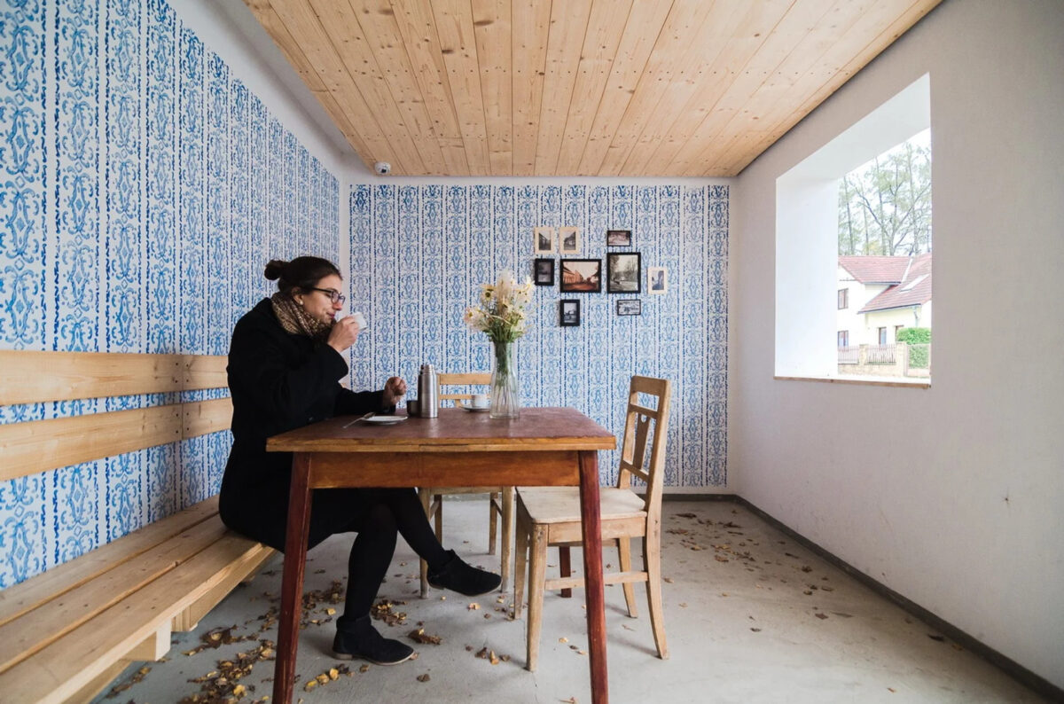 Interiér má venkovský ráz, něco jako světnice u prababičky, kam příliš nefouká, neprší do ní, přes den do ní svítí trochu slunce a vždy tam proudí čerství vzruch.