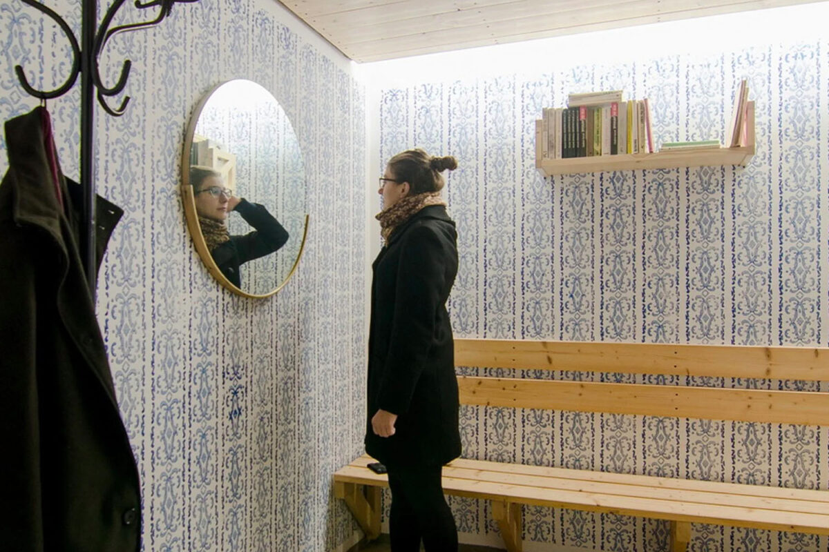 Po rekonstrukci z ní vyšlo něco mezi obytnou místností, předsíní a dopravní stavbou. Nebo všechno zároveň.