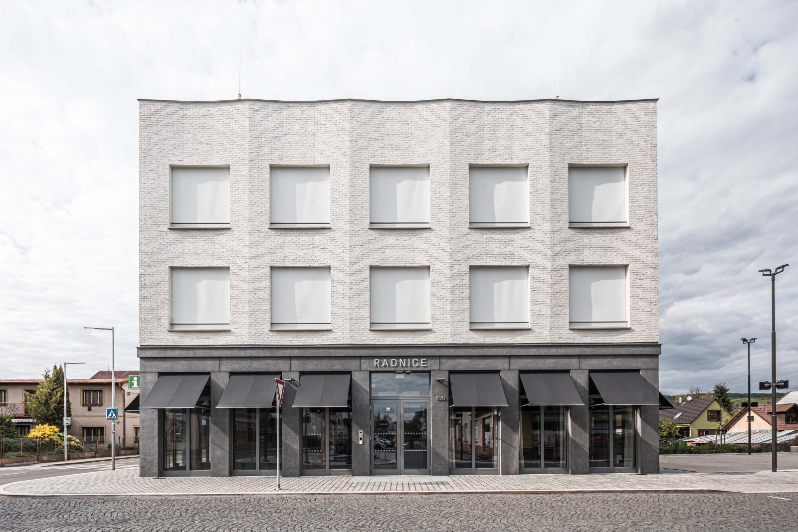Nová budova na Náměstí K. V. Raise má jednoduchý obdélníkový půdorys a pozornost přitahuje svou sněhobílou prolamovanou fasádou z cihel, jež se pod různými úhly slunce proměňuje. Veřejné přízemí je maximálně otevřené, obsahuje víceúčelový sál, zasedací místnost a podatelnu s infocentrem a lze jej rozšířit i ven k potoku. Atrium prochází i zbylými dvěma patry s kancelářemi a stírá tak hranici mezi občany a vedením města. To je ostatně při svém zasedání v přízemí stále ve spojení s náměstím. Mosazné zábradlí, modřínové dřevo, teracové podlahy a pohledový beton dodávají radnici na stabilitě v čase, zároveň jsou ale příjemné na dotyk i na pohled.