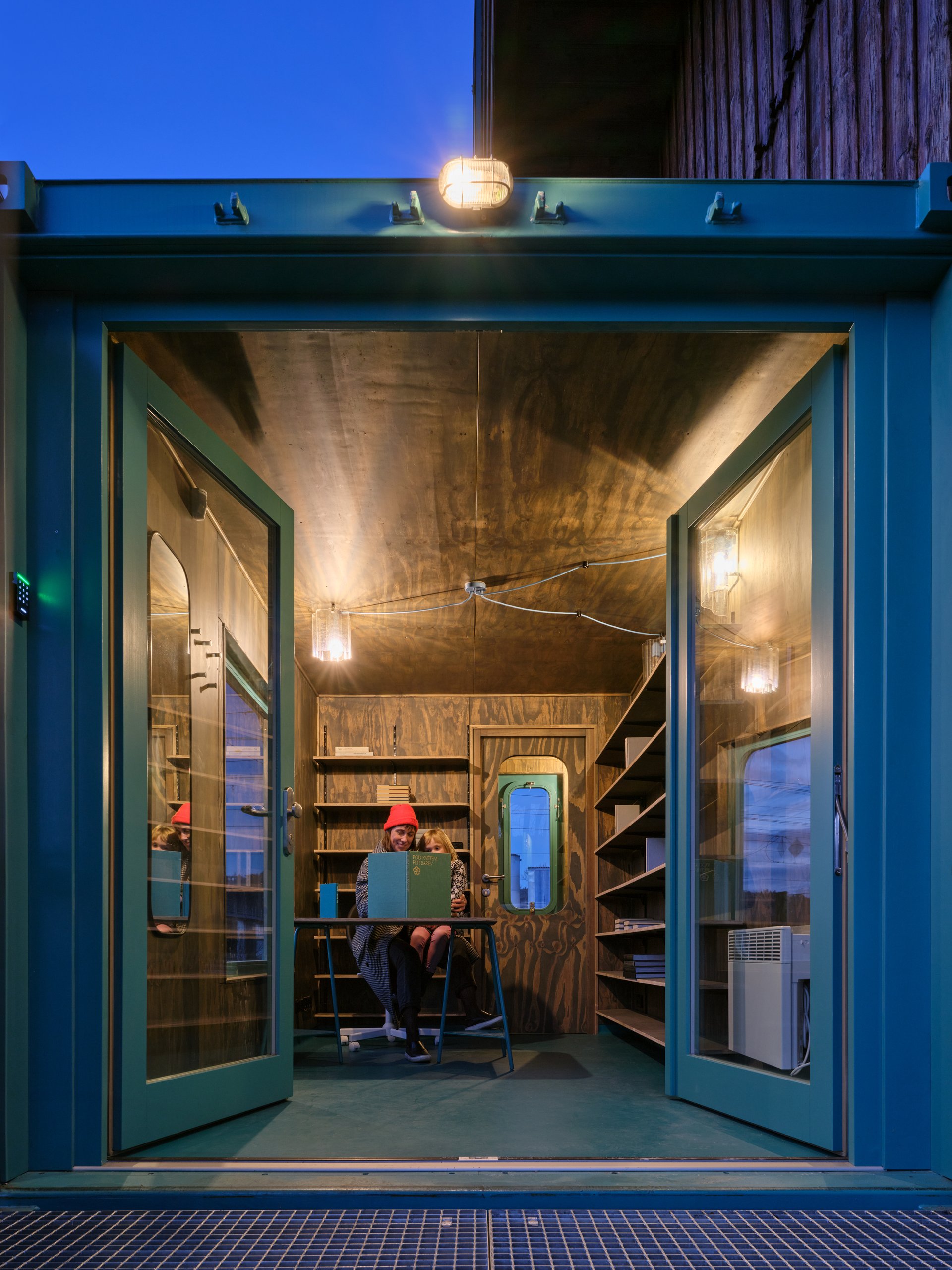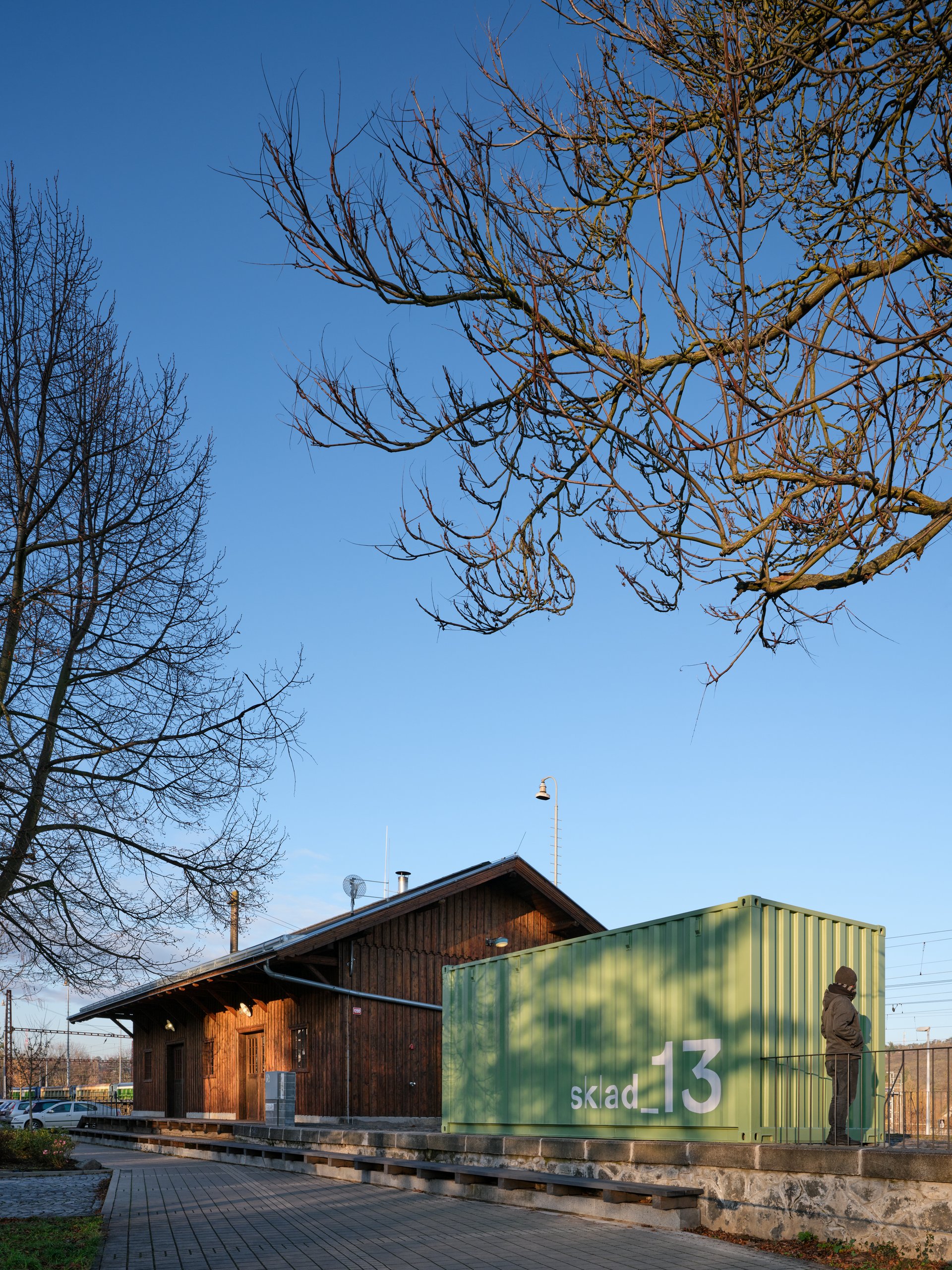 Nevyužívaný nádražní sklad z 19. století s výraznou sedlovou střechou koupilo v roce 2010 město Řevnice. Pod záštitou ZUŠ v něm vznikl koncertní, taneční a výstavní sál, který zachoval ráz budovy a veškeré zázemí vyřešil formou přistavených lodních kontejnerů. Ty navazují na celkové sepětí místa s dopravou a díky své výrazné barevnosti zároveň jasně vymezují, co je nové a co původní. Uvnitř sálu přibyl ocelově opláštěný krb a malý bar, v podkroví vznikl sklad pro ukládání židlí. Voda ze střechy se zachycuje do jímky a může být využita k zalévání okolní zeleně. Za budovou si v kontejneru nazvaném Open Book mohou registrovaní místní zdarma přečíst či odnést knihu, případně ji sami darovat.