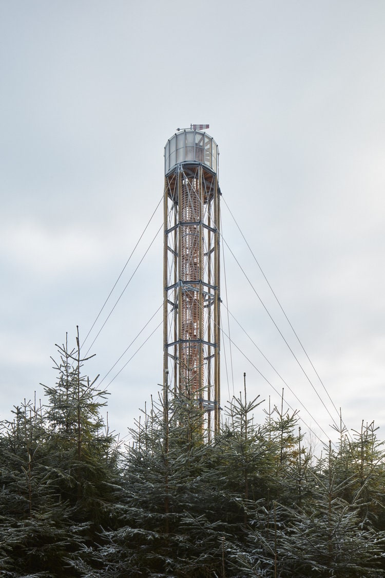 Při návrhu byl brán důraz na přirozenost celé struktury, proto jako hlavní materiály bylo použito modřínové dřevo, ocel a kámen.