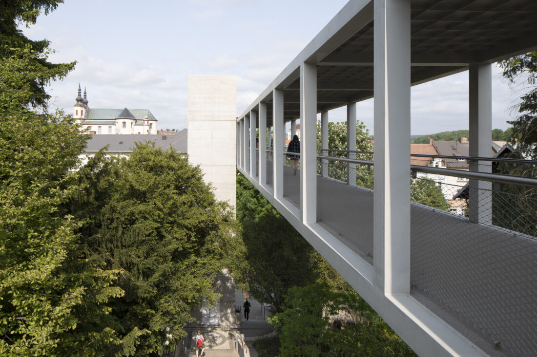 Nová Smetanova lávka v Litomyšli nahradila původní nadchod z roku 1981 a propojuje městský úřad s historickým centrem. Štíhlá ocelová konstrukce nesená dvojicí masivních pilířů připomíná při pohledu z dálky kříž. Díky zastřešení je lávka chráněná před deštěm i sněhem a její plná bezbariérovost zpřístupňuje město všem. Z lávky se otevírají výhledy na řeku Loučnou a panorama Litomyšle, které vnášejí do běžného přechodu přes silnici nečekaný zážitek.