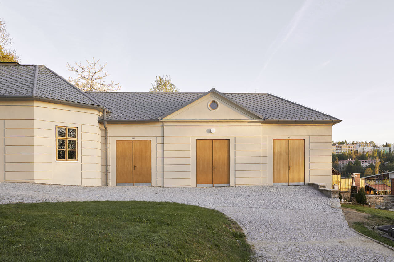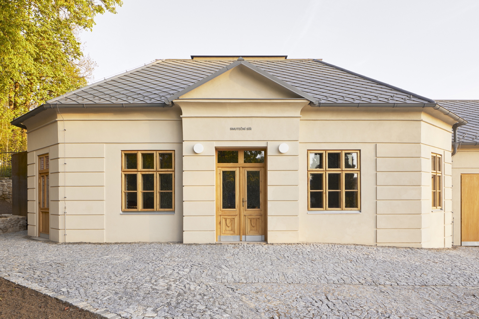 Příběh smuteční síně ve Vimperku je příběhem skutečného znovuzrození. V minulém století sloužil skromný domek na kraji hřbitova nejen jako jednoduchá smuteční síň, ale zároveň jako byt správce. V průběhu času se však pietní funkce vytratila a objekt se změnil spíše ve skladiště. Projekt obnovy přesunul smuteční síň do většího vedlejšího objektu a s domkem počítal jako s jejím zázemím. Kvůli špatnému technickému stavu však nezbylo než domek nejdřív zbourat, respektive rozebrat. Precizní práce umožnila následné umístění prvků zpět na své místo a vznikl tak objekt doplněný o soudobé zásahy.