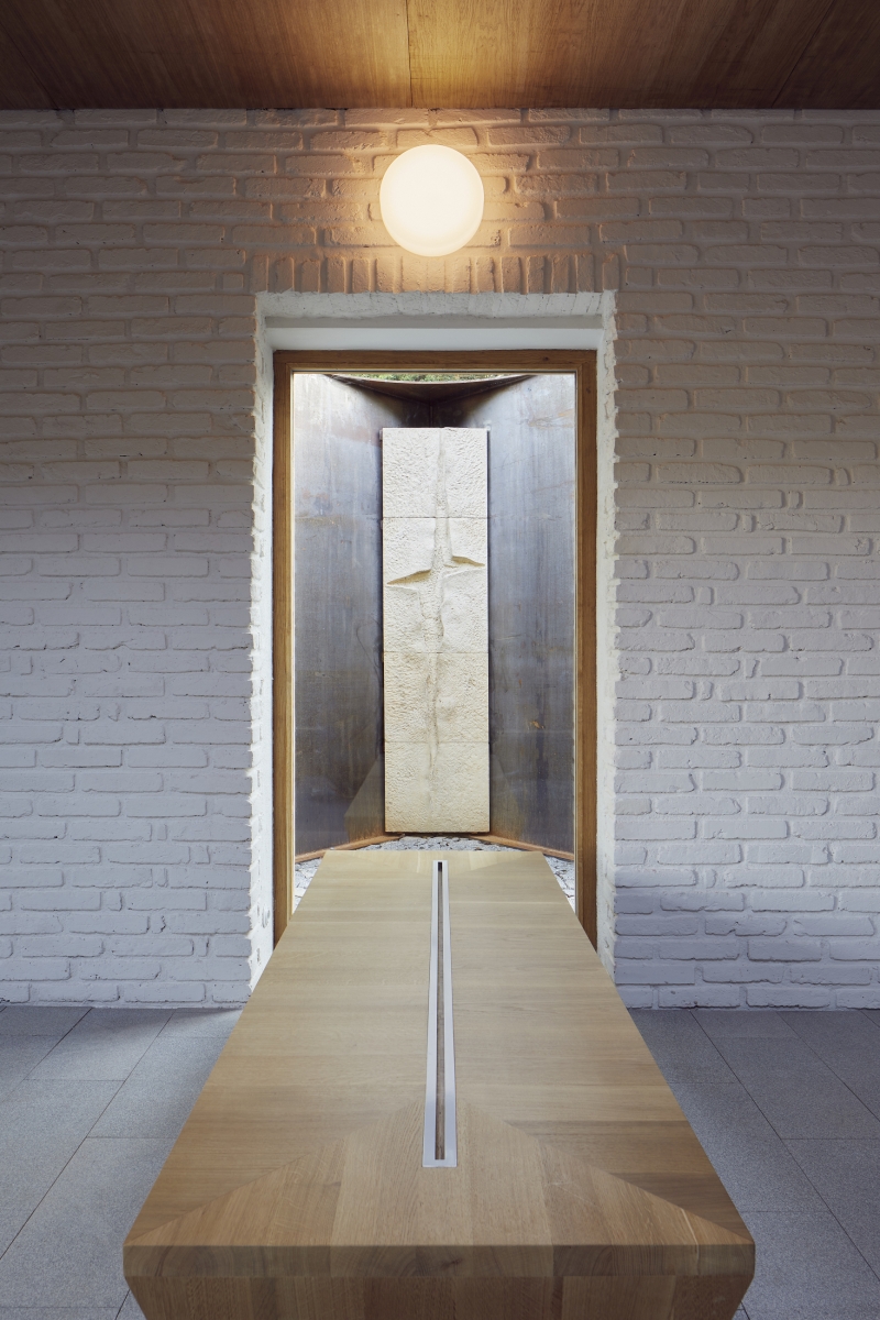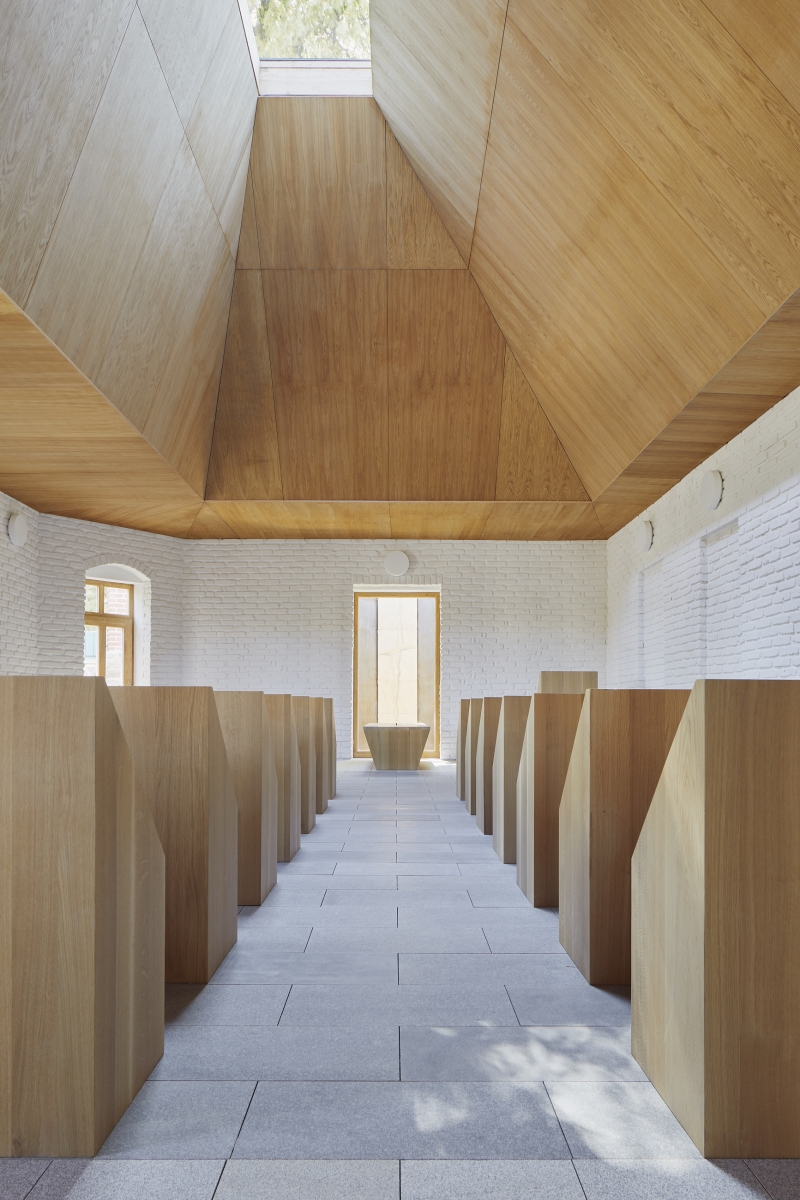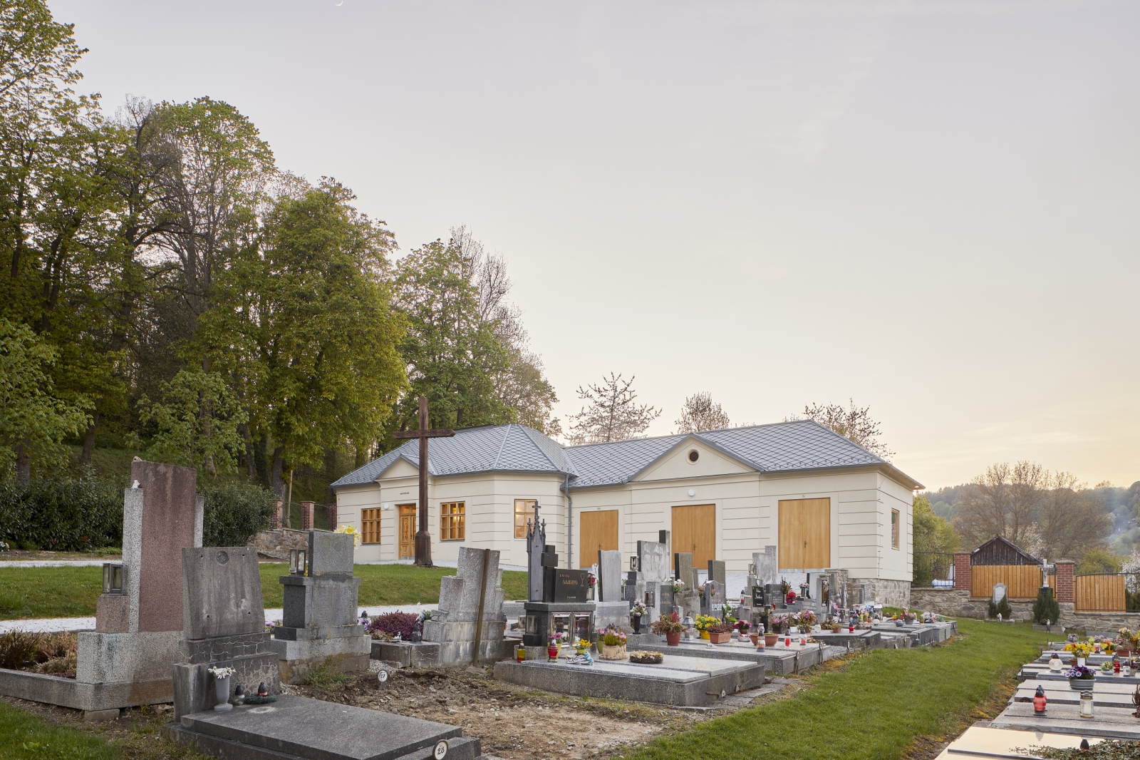 Příběh smuteční síně ve Vimperku je příběhem skutečného znovuzrození. V minulém století sloužil skromný domek na kraji hřbitova nejen jako jednoduchá smuteční síň, ale zároveň jako byt správce. V průběhu času se však pietní funkce vytratila a objekt se změnil spíše ve skladiště. Projekt obnovy přesunul smuteční síň do většího vedlejšího objektu a s domkem počítal jako s jejím zázemím. Kvůli špatnému technickému stavu však nezbylo než domek nejdřív zbourat, respektive rozebrat. Precizní práce umožnila následné umístění prvků zpět na své místo a vznikl tak objekt doplněný o soudobé zásahy.