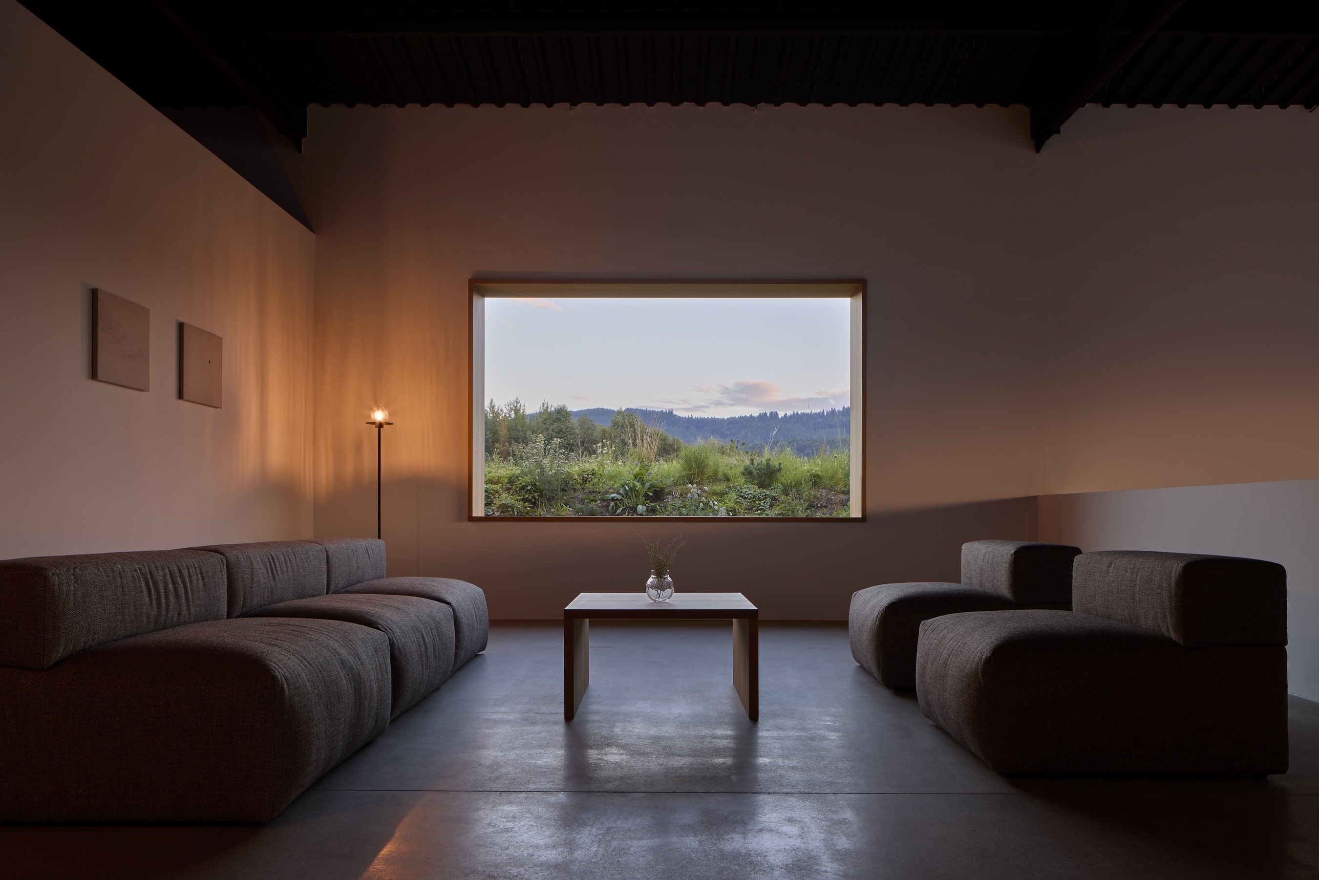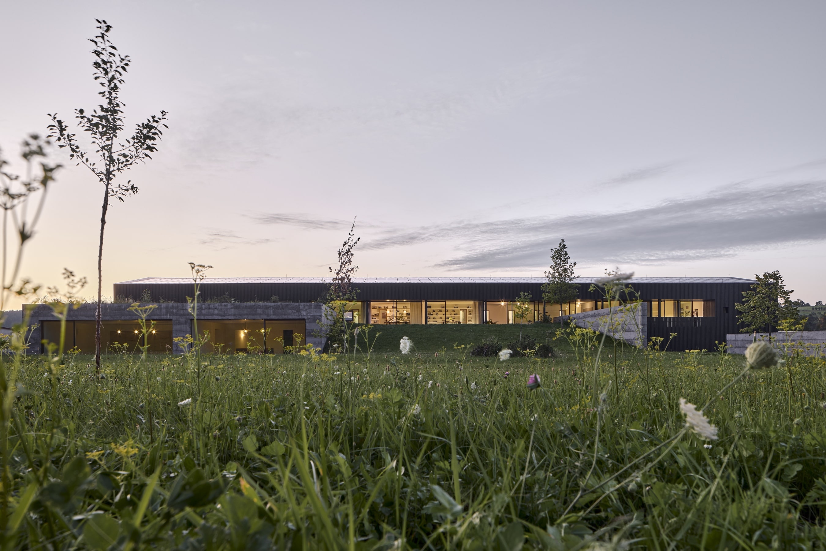 Na okraji Bílých Karpat, kde se louky setkávají s lesem, vytvořila rodinná firma Janošík své nové sídlo i showroom. Dům, kterému se říká Spoj, vznikl z původní obilné haly z 50. let, jež prošla radikální proměnou. Z uzavřené stavby se stal otevřený prostor s průhledy do krajiny a s velkými okny, která sama o sobě vyprávějí příběh o propojení architektury a přírody. Černý objem domu doplněný betonovou náručí působí navenek stroze, ale interiér překvapí klidem, světlem a výhledy. Showroom předvádí nejen technické možnosti, ale i atmosféru vytvářenou různými typy oken – od posuvných skleněných stěn po experimentální řešení, která stírají hranici mezi interiérem a zahradou. Vnitřní prostor doplňují umělecké zásahy Maxima Velčovského, Lukáše Musila a studia Dechem, které rozvíjejí dialog domu s krajinou. Rekonstrukce cílila na udržitelnost – solární panely, využití stávající haly i zahrada osázená místními stromy a rostlinami dávají stavbě přirozenou vazbu na okolí. Spoj je tak ukázkou toho, jak může i průmyslová stavba vyrůst v citlivý a inspirativní dům.