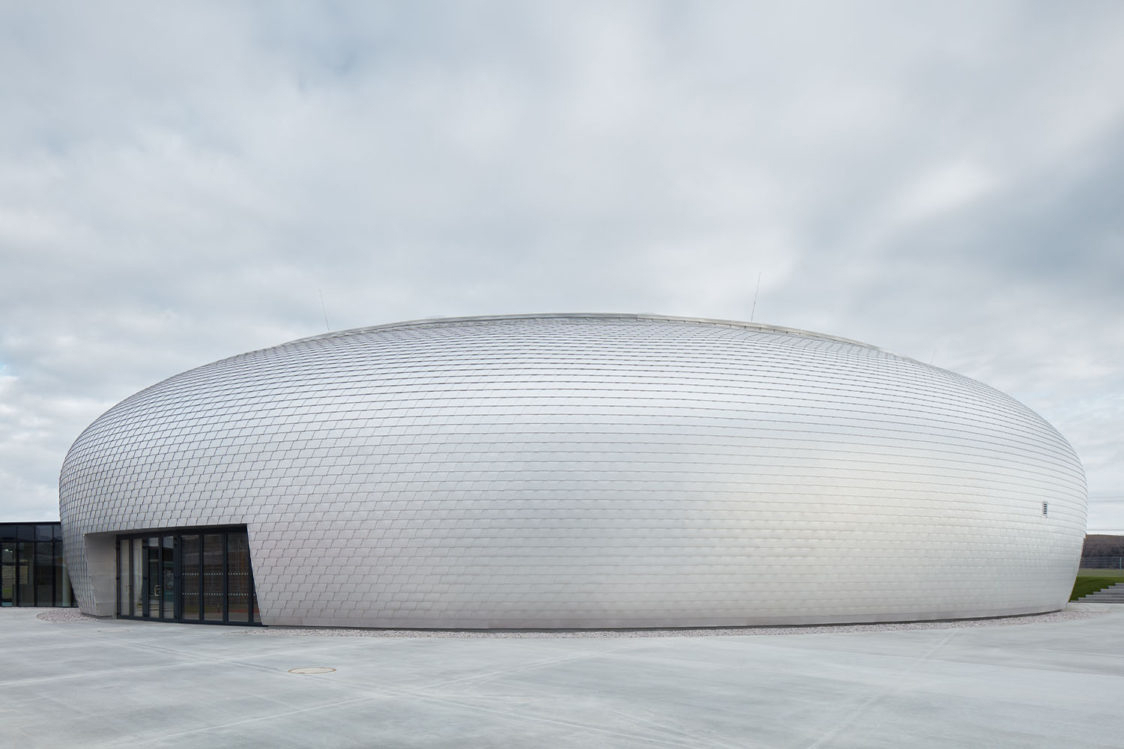 Sportovní hala je v Dolních Břežanech, v obci, kde dbají na architektonické a urbanistické hledisko. Projekt reaguje na požadavky současnosti i neznámé v budoucnosti. Hladký, oblý a abstraktivní – slova charakterizující vnějšek. Fasáda z falcovaných šindelů zrcadlí okolí.