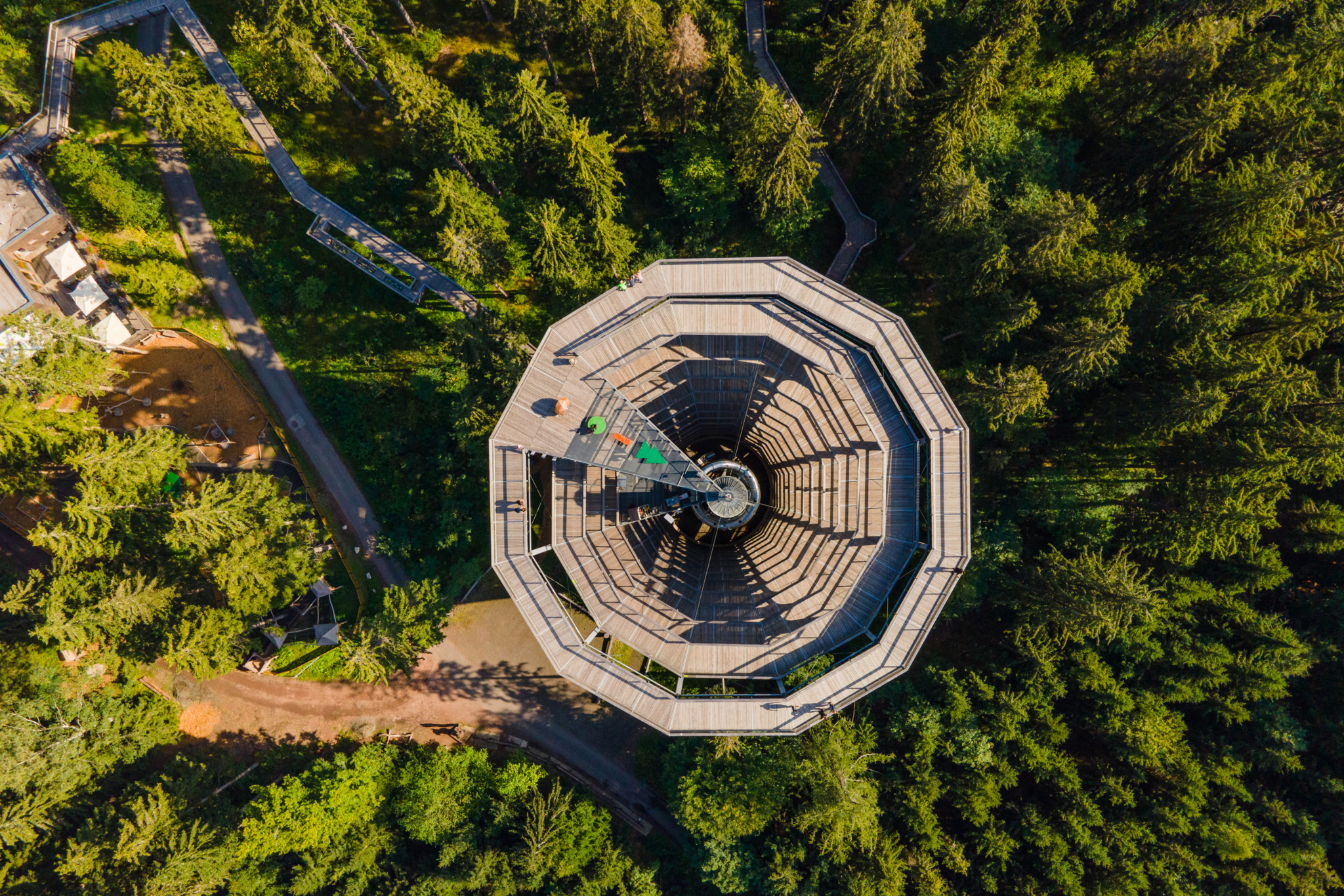 Cesta začíná u kořenů, kde se rodí život, a pokračuje vzhůru k majestátním korunám stromů. Na vrcholu pak čeká kruhový výhled na okolní krajinu, která berou dech v každém ročním období.