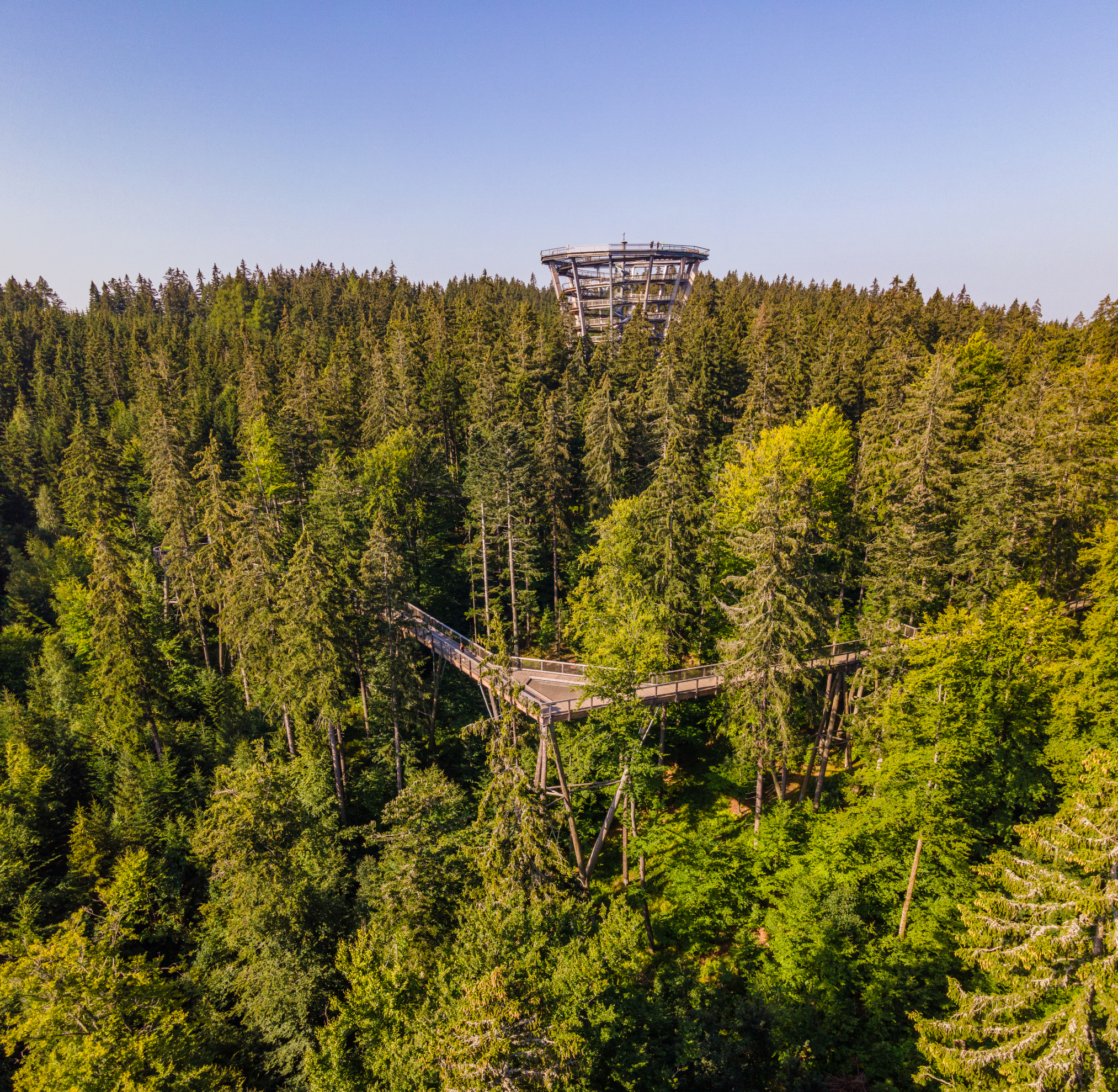 Cesta začíná u kořenů, kde se rodí život, a pokračuje vzhůru k majestátním korunám stromů. Na vrcholu pak čeká kruhový výhled na okolní krajinu, která berou dech v každém ročním období.