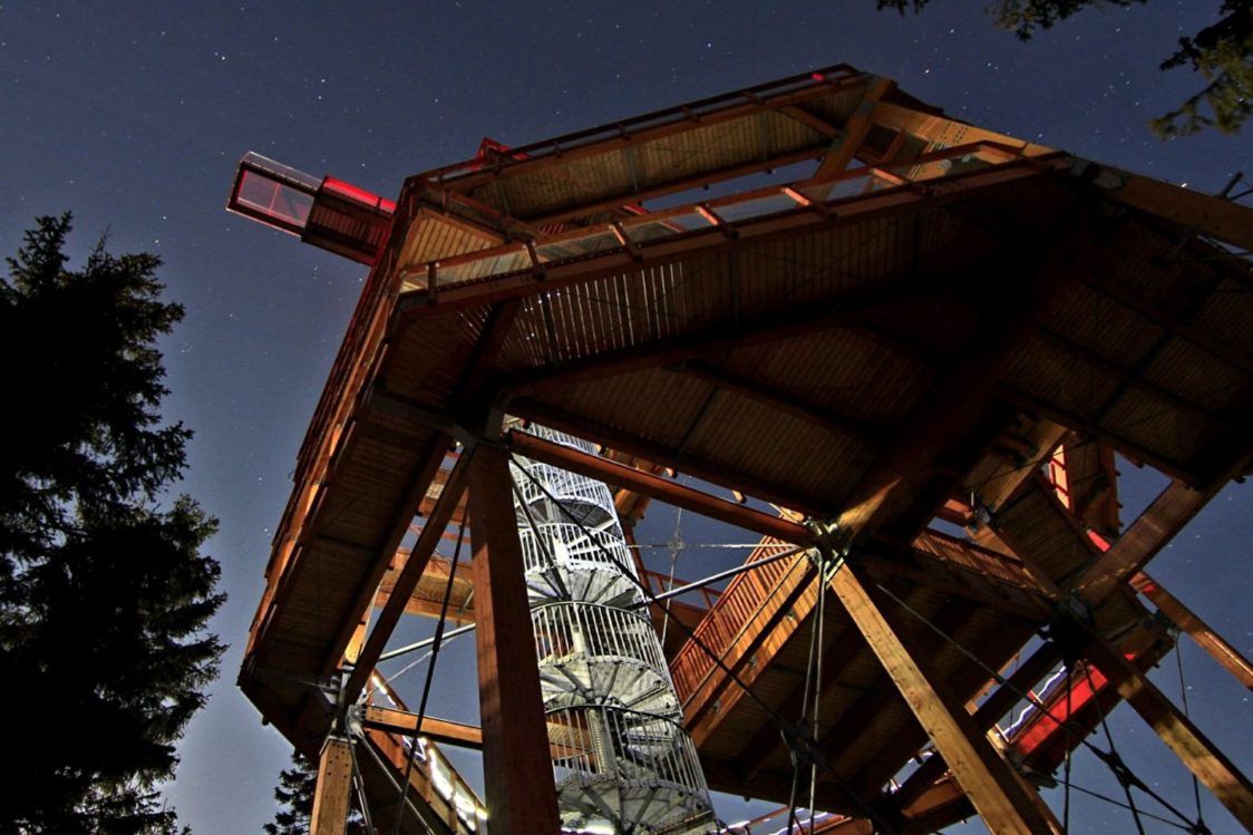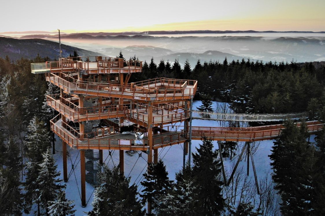 Stezku tvoří jedinečný lanový chodník v České republice, nejdelší prosklený skywalk v Evropě nebo třeba nejvýše položené trampolínové hřiště v Česku. Vrchol vyhlídkové věže je ve výšce 1099 metrů na mořem a při příznivé viditelnosti nabízí rozhled do okolí až 100 kilometrů.