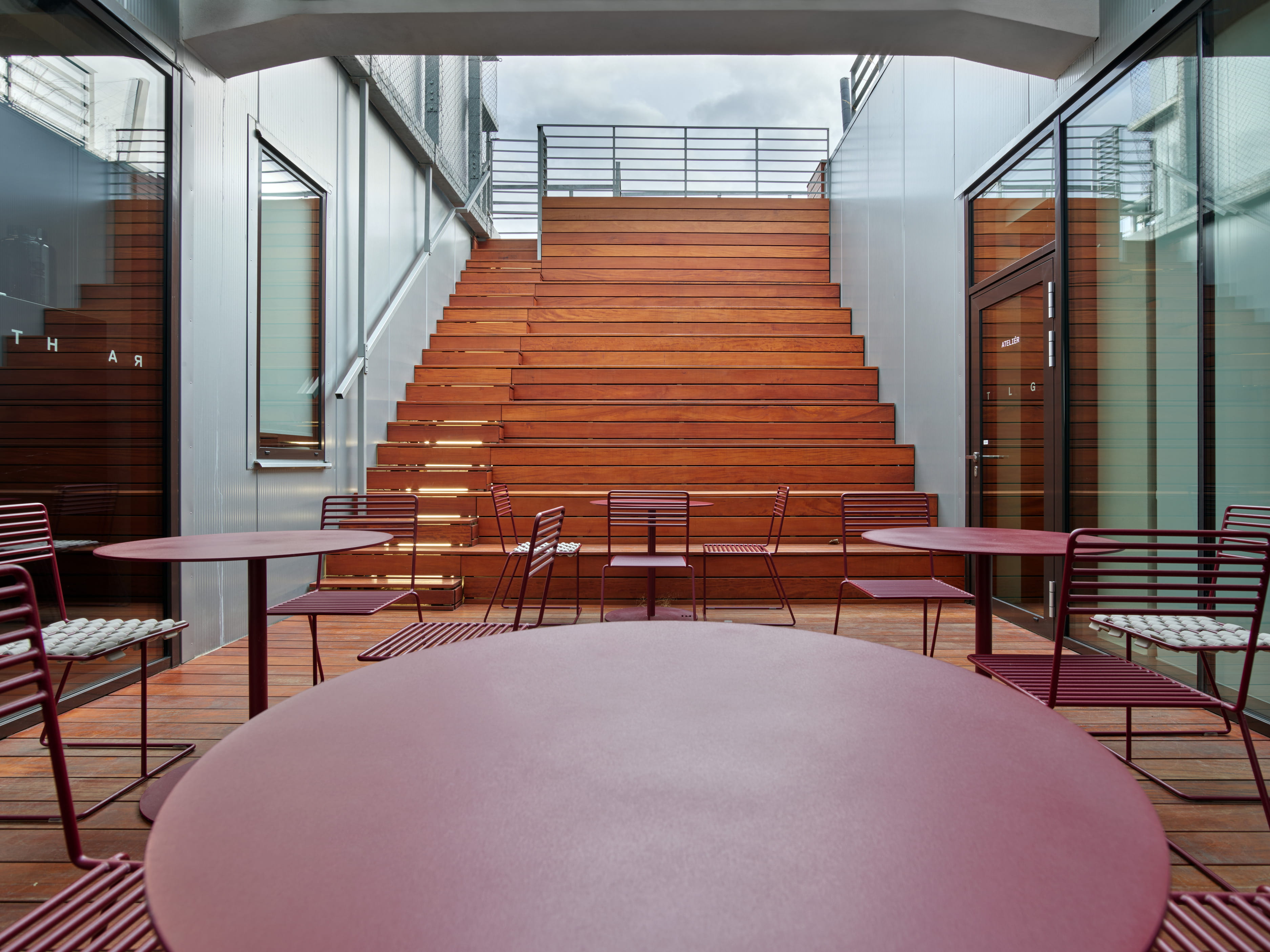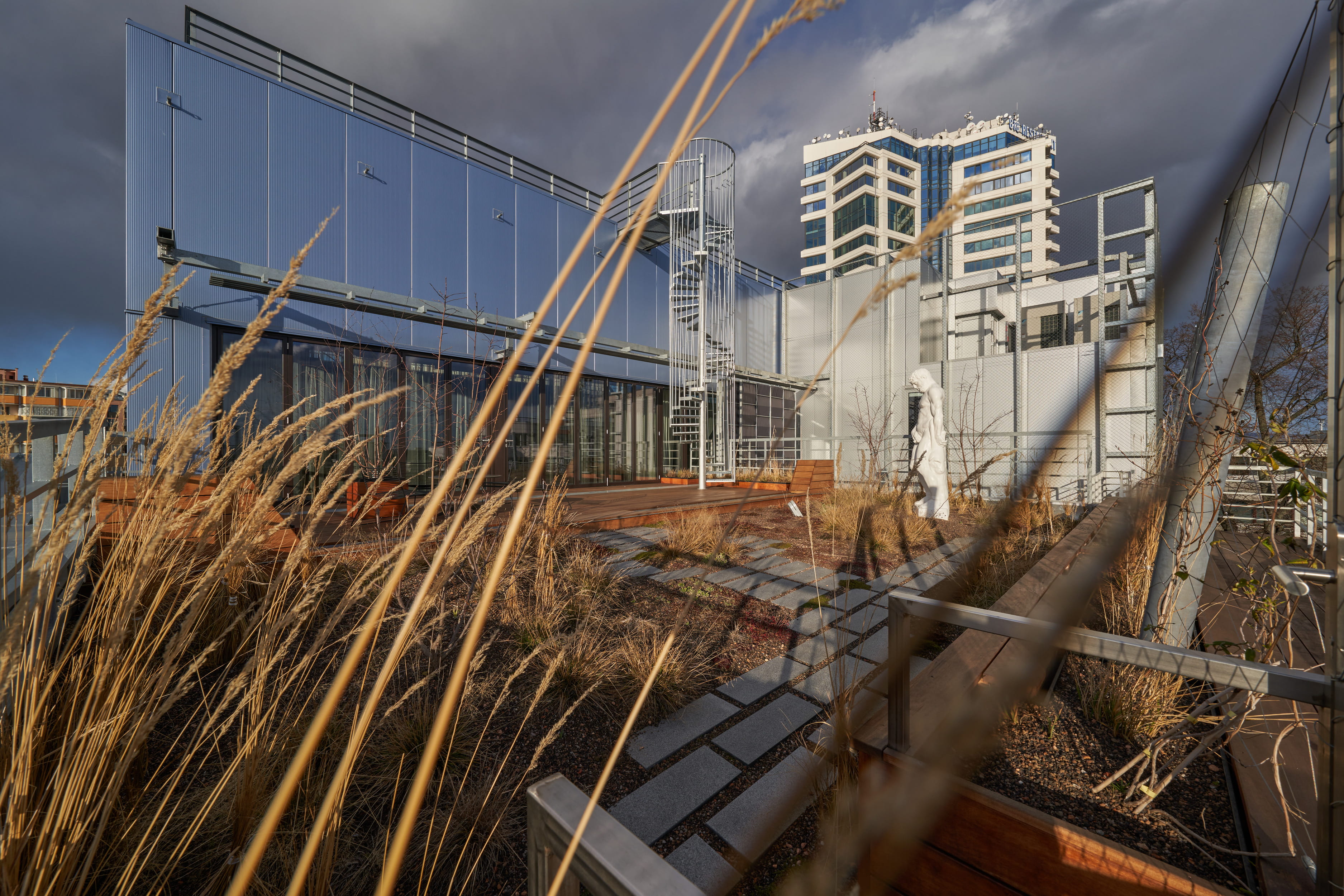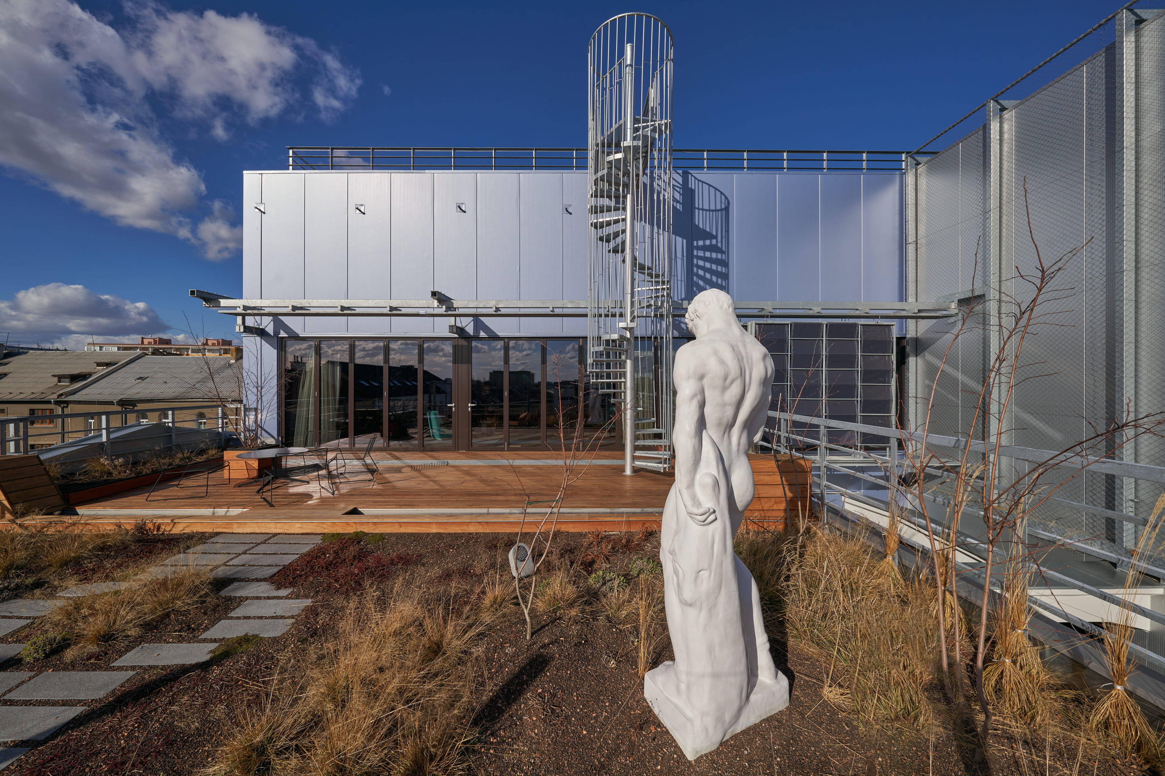 Galerie začíná přímo na chodníku. Žádné schody, žádné formality – jen sklo, světlo a obrazy. Ve vyšších patrech se pracuje, myslí, a užívá volný čas. Z kavárny se dá projít do malého sálu, kde se hraje, promítá, debatuje. Je tu i byt pro rezidenčního umělce – protože dům není jen o programu, ale i o lidech, kteří ho tvoří. A když se vyjede ještě o patro výš, do nástavby, změní se tón. Loft je jako vystřižený z filmového záběru. Ocel a umění doplňují eleganci celého prostoru. Celému domu kraluje terasa loftu, ze které se dá dostat až na samotnou střechu. Zde má návštěvník jediný úkol – užívat si výhledu na Olomouc z jedné z nejunikátnějších staveb nejen v této moravské metropoli.