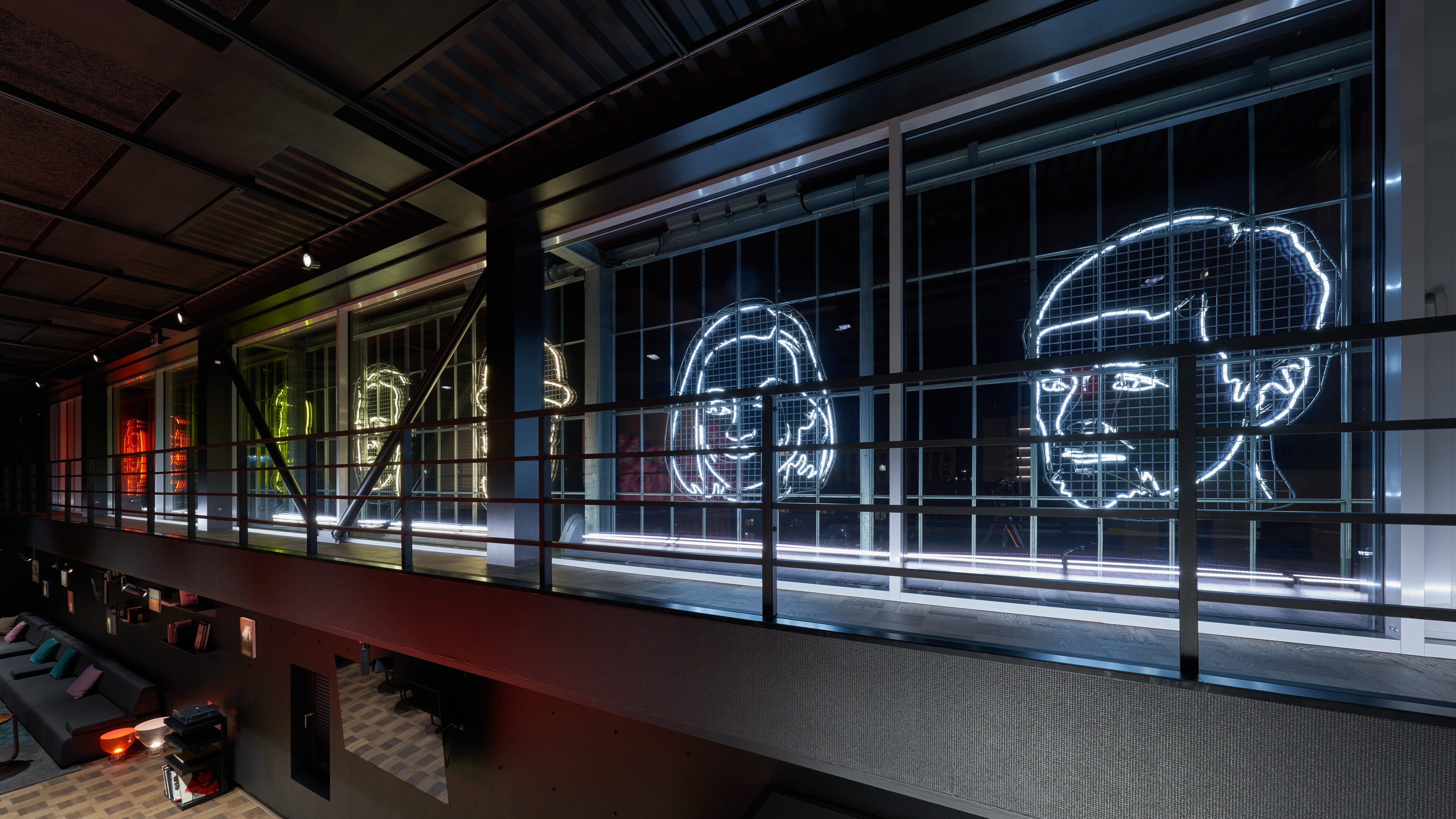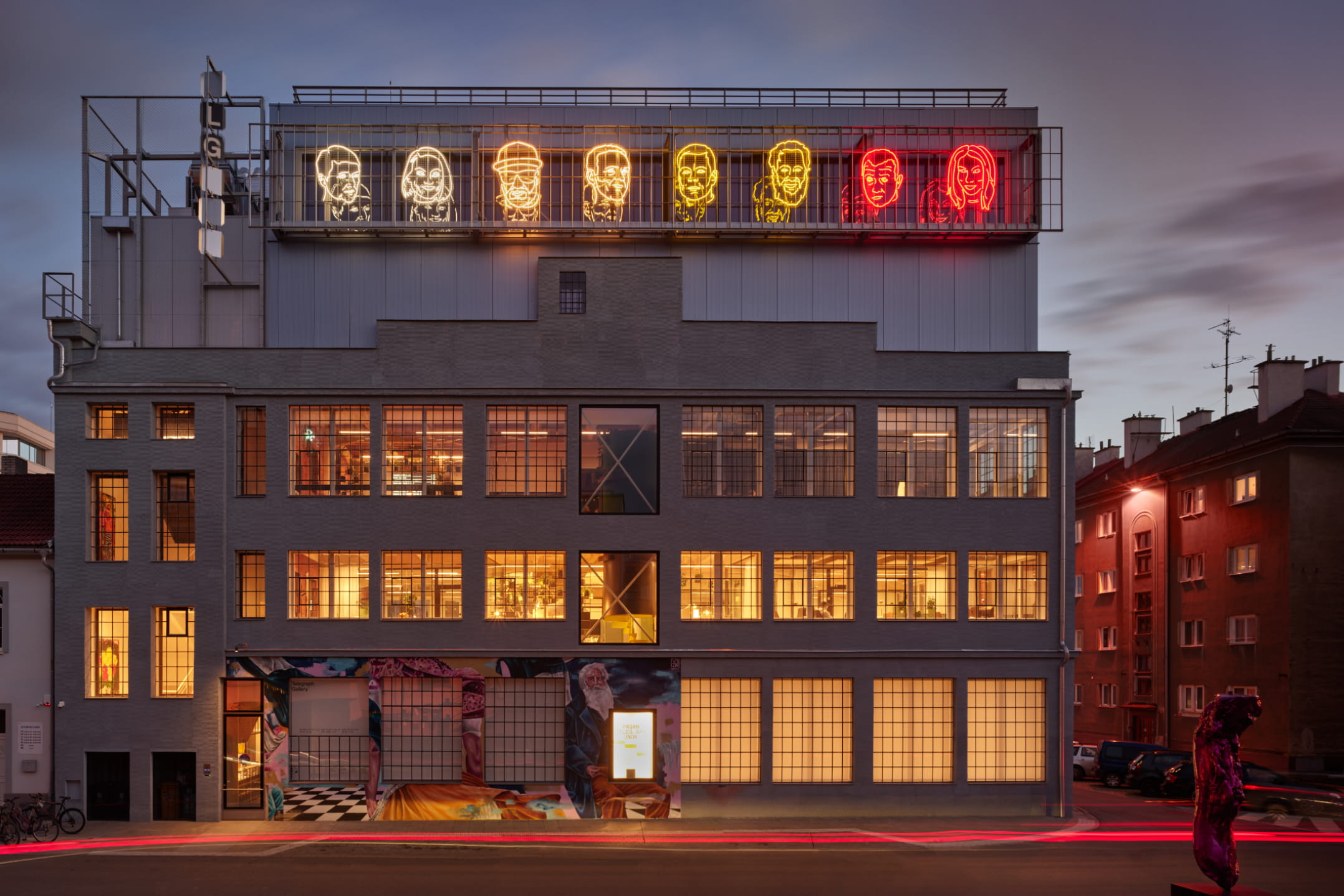 Zvenčí se nezapřou rysy bývalé továrny na telegrafy. Tahle budova nedaleko hlavního nádraží v Olomouci, to je industriál povýšený na další level. To, co na první pohled na vnější fasádě naznačují nad městem svítící neonové prvky znázorňující zakládající tým olomouckého Telegraphu, je vevnitř dotaženo do naprostého detailu. Původní etáže dnes nesou galerii, coworking, kavárnu i loft. Každé patro má svou náladu, každé jiný účel i tempo. Vše propojuje cihlová příčka – rudá, neomítnutá, vedená skrz dům jako jeho páteř. Stará konstrukce drží, nový obsah pulsuje.