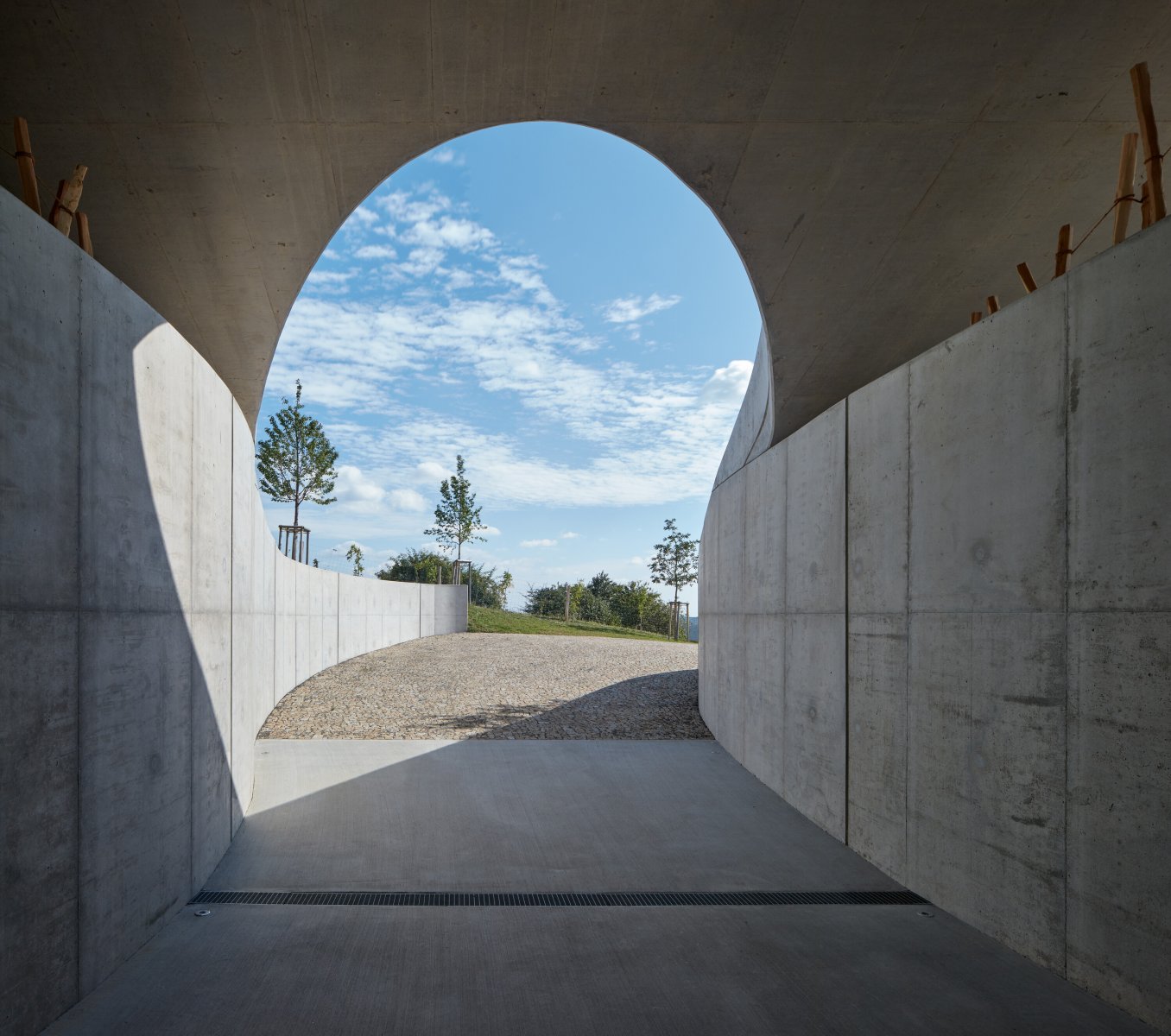 Budova má dvě patra a podzemní část určenou k výrobě a archivaci vína. Beton, sklo, kov a dřevo společně vytvářejí estetický celek, ve kterém je kladen důraz na detail i na péči o zákazníky a kvalitu vín.