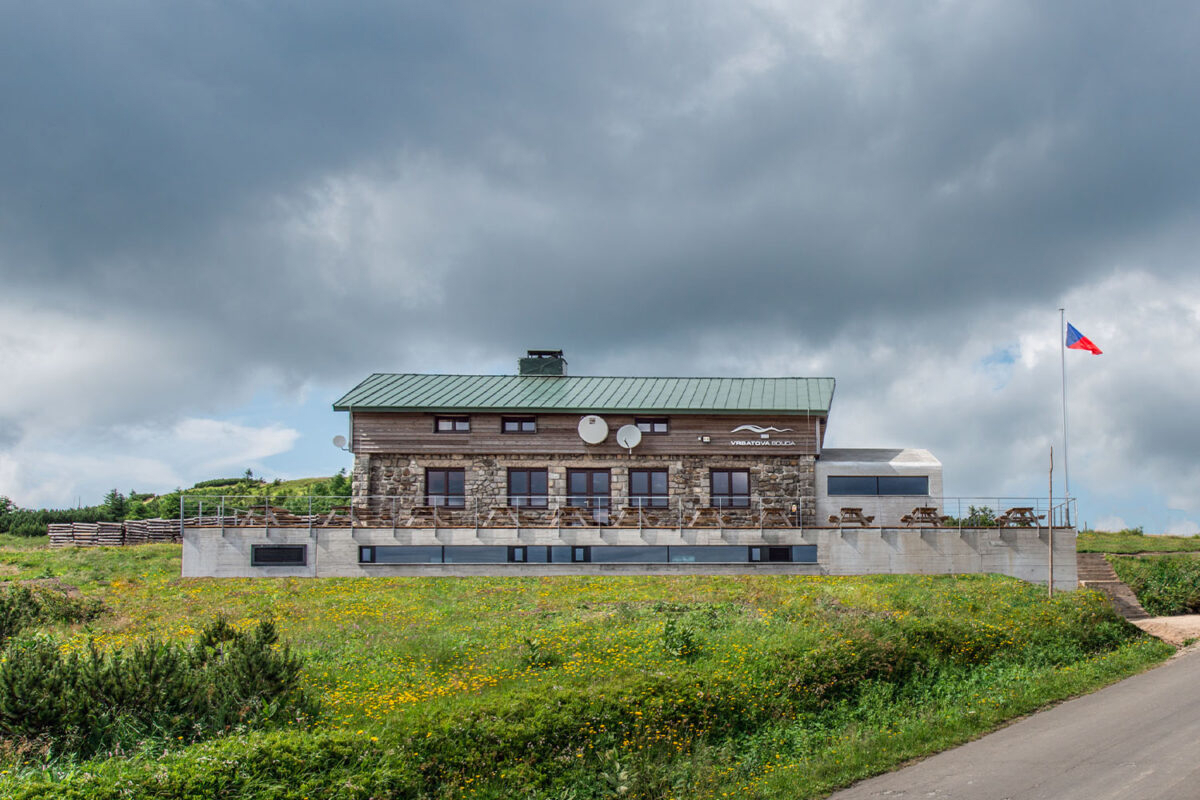 Nový koncept byl založen na zachování původní boudy, očištěné od novodobých nefunkčních přístaveb a vnitřních příček. Postupně byly přidávány nové vrstvy, na který převažují tři materiály – modřínové dřevo, nerezový plech a pohledový beton s otiskem bednění. Dřevo se uplatňuje v interiéru restaurace, v bufetu, na venkovním obkladu podkroví a vyhlídkové terase. Nerezový plech v nové varně a nově vestavěných toaletách. Kontrastní forma přístavby přitom neparazituje na původním domě, ale tvoří funkční symbiózu starého s novým.