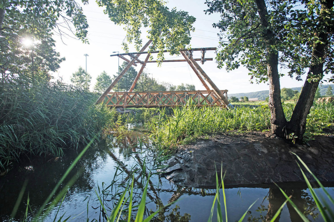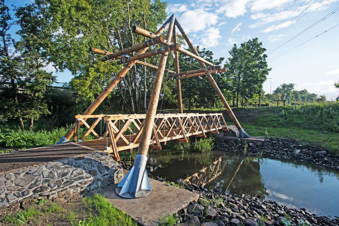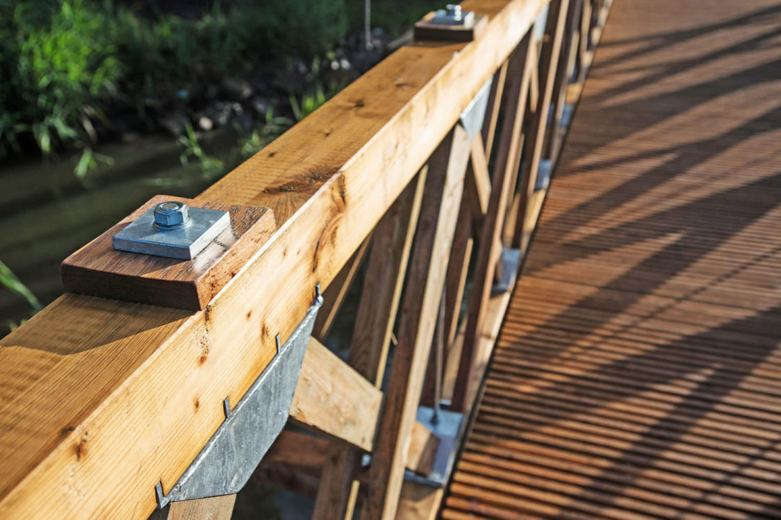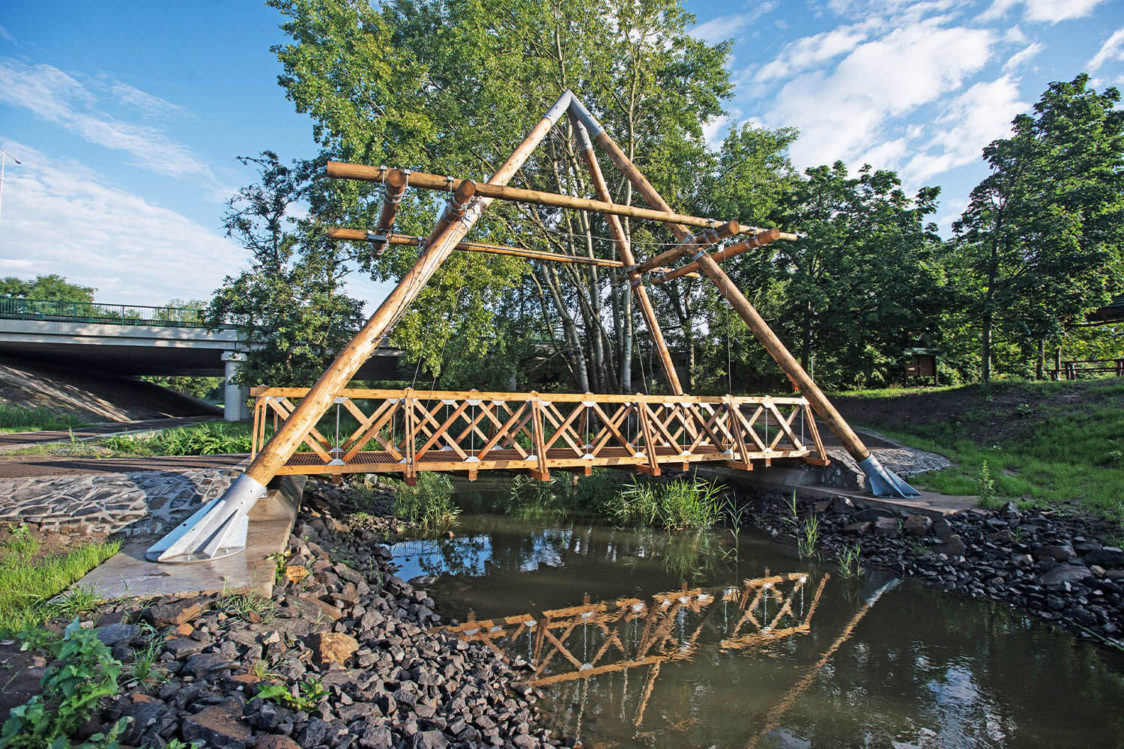 Aby šlo v případě hrozby velké vody lávku ručně zvednout, byla konstruována z co nejlehčích materiálů a nejvýhodnější kostry. Takzvaný „Howe vazník“ je velmi oblíbený od dob, kdy se po světě začala šířit železnice. Lávka byla navržena Hutí architektury a dokončena byla v roce 2017.